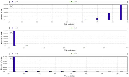 The quality metrics of the final delineated grid are shown in Figure 3. The cell mass of the grid is mostly in the range of 0.75–1, the aspect ratio is mostly in the range of 2–3, the grid skewness is mostly in the range of 0–0.13, and the orthogonal mass is mostly in the range of 0.88–1. The smallest cell size of the mesh is 7 mm, which is located in the cylinder and overflow pipe part of the cyclone desander, and the cell size of all other parts is 10 mm.