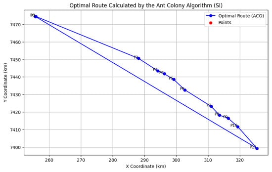 Optimized route by the ACO metaheuristic. Source: Authors, 2024.