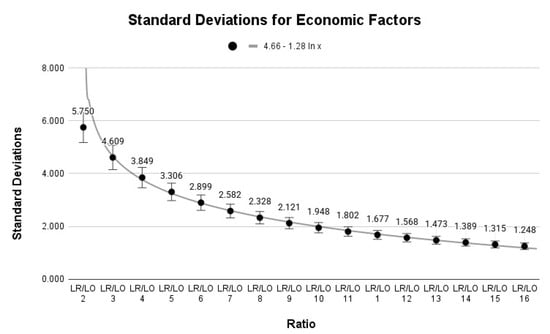 The relationship between the economic reliability factor (ERF) and fuel efficiency is established based on the difference between the estimated optimal value and the real value obtained. Such a difference reflects the accuracy and reliability of the economic model in predicting fuel consumption performance under practical conditions and is an essential indicator for assessing the efficiency of projected results and their adherence to real operating conditions. This relationship is directly linked to fuel efficiency indices, as higher performance values result in a proportional reduction in standard deviations in economic reliability factors, as shown in Figure 4. This provides a more precise and accurate analysis of fuel efficiency.