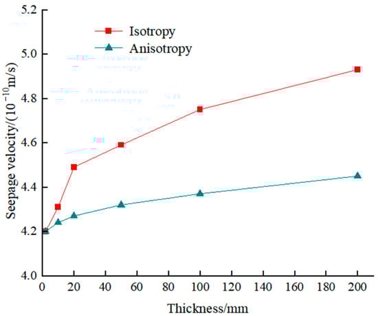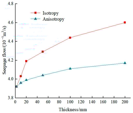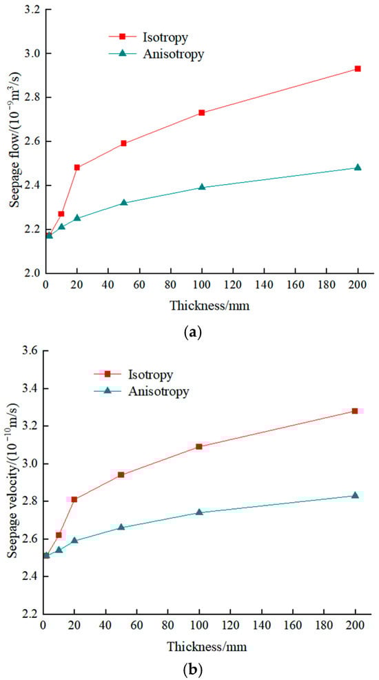 Table 3 presents the relative errors calculated based on the actual thickness for the maximum seepage flow and the maximum seepage velocity under the assumption of isotropy when considering different equivalent thicknesses.