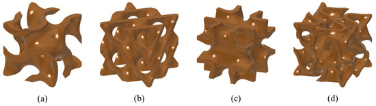 - Zhang, Y.; Zhang, J.; Chen, X.; Yang, W.; Chen, H.; Che, S.; Han, L. Mechanical Properties of 3D-Printed Polymeric Cellular Structures Based on Bifurcating Triply Periodic Minimal Surfaces. Adv. Eng. Mater. 2025, 27, 2402507. [Google Scholar] [CrossRef]