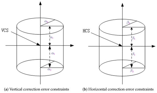 These errors encompass both vertical and horizontal components. To ensure feasible error correction, constraints are established based on the type of correction available from the selected GBS: