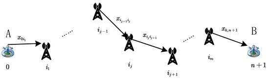 Since the starting point A and the destination B, it is imperative to assert the existence of GBSs connected with A and B, respectively. Therefore, the following expressions hold.