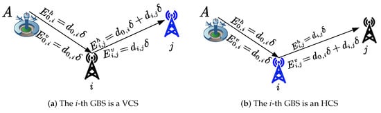 As delineated in Table 1, the element positioned at the intersection of the i-th row and j-th column, denoted as , serves as a decision variable that indicates the connectivity status between the i-th and j-th GBSs. That is