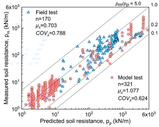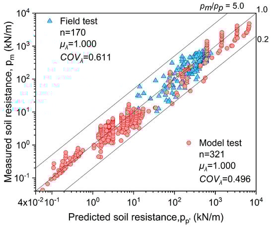 where = measured surrounding soil horizontal resistance; = predicted surrounding soil horizontal resistance using Equation (1).