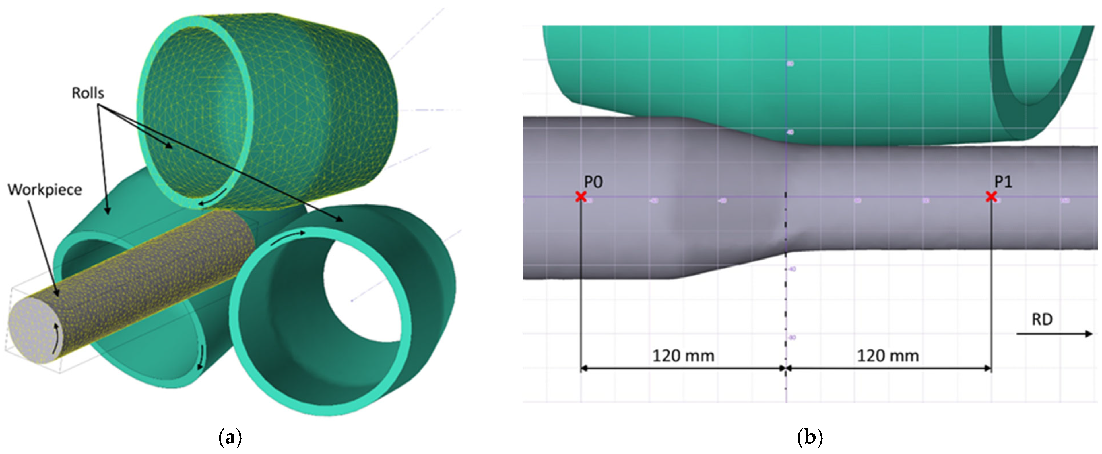 - Kin, T.Y.; Gamin, Y.V.; Galkin, S.P.; Skugorev, A.V. Numerical simulation of workpiece temperature field during radial shear rolling of biomedical Co-Cr-Mo alloy. Model. Simul. Mater. Sci. Eng. 2023, 31, 065002. [Google Scholar] [CrossRef]