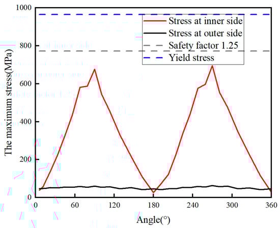 Comparison of maximum stress on inner and outer walls of casing hole.