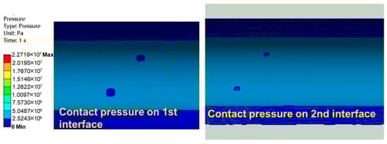 Contour plot of contact pressure on 1st and 2nd interfaces.