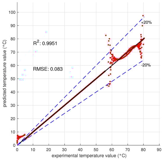 As presented in Table 1, the methodology proposed in this paper obtained very similar results in each metric. Considering , the values obtained in both cases are very close to 1, which is what is sought when applying this metric. Considering metrics such as MSE or RMSE, both penalize large estimation errors generated through the simulation, seeking results close to zero, as in this case. The RMSLE metric is used to eliminate the effect of outliers that arises at the beginning of the estimation, for which results close to zero are also sought. Although it is possible to observe a noticeable deviation in the temperature estimation when a reference change occurs, even if only for a short period, this may be attributed to issues related to the hyper-parameters of the CNN. In general, learning-based approaches often face challenges in hyper-parameter selection. It would be valuable in future work to incorporate a heuristic-based search algorithm to mitigate these effects, especially considering that transients can significantly impact controllers when dealing with faster system variables.