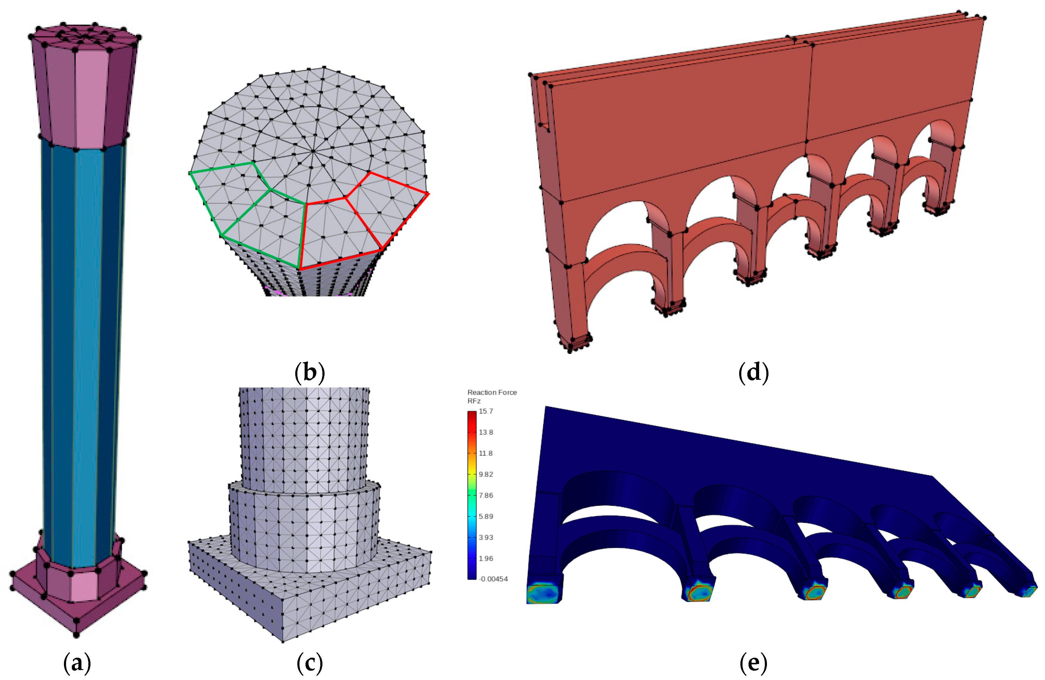 - Giaccone, D.; Fanelli, P.; Santamaria, U. Influence of the Geometric Model on the Structural Analysis of Architectural Heritage. J. Cult. Herit. 2020, 43, 144–152. [Google Scholar] [CrossRef]