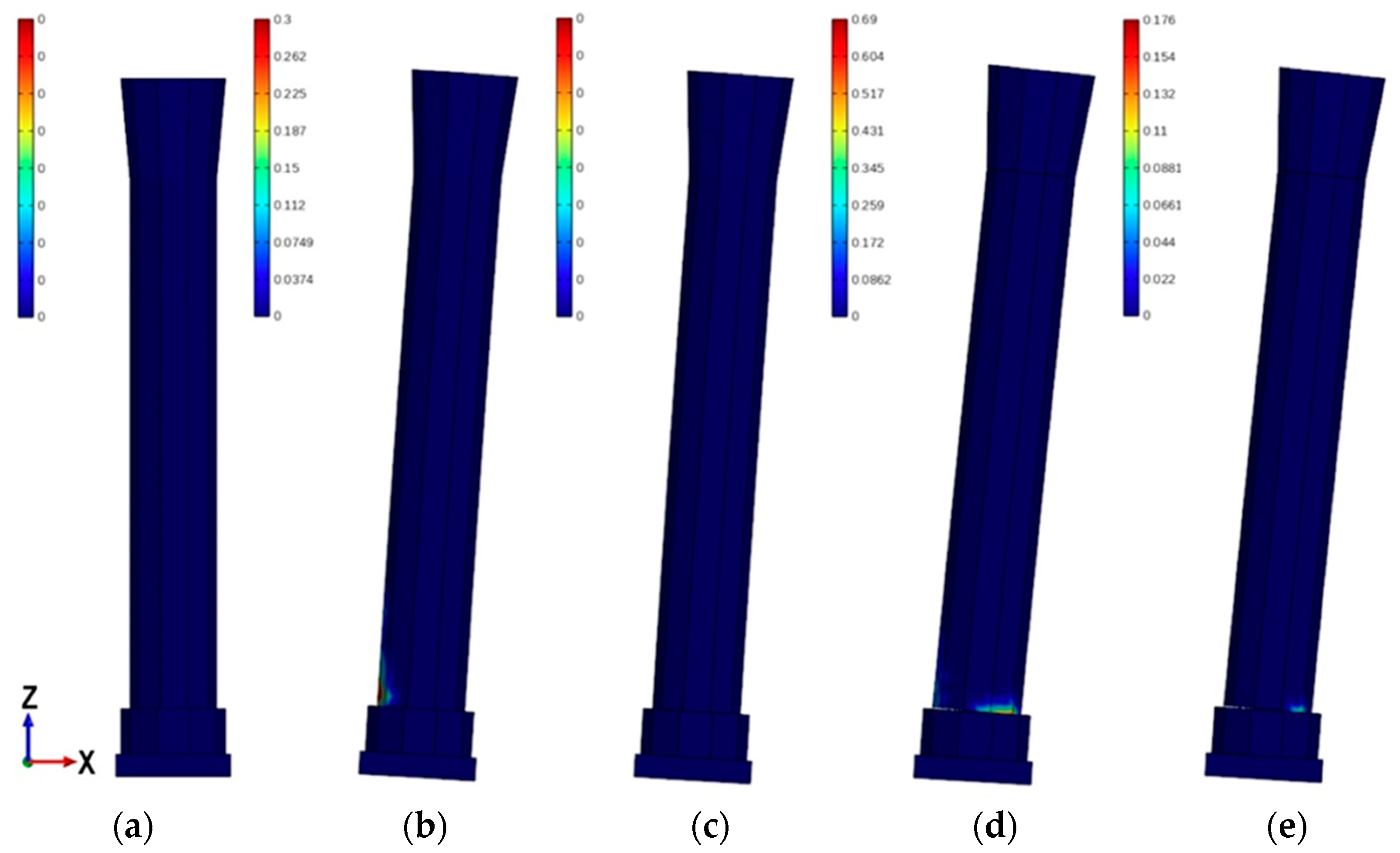 - Papadopoulos, K.; Vintzileou, E.; Psycharis, I.N. Finite Element Analysis of the Seismic Response of Ancient Columns. Earthq. Eng. Struct. Dyn. 2019, 48, 1432–1450. [Google Scholar] [CrossRef]
