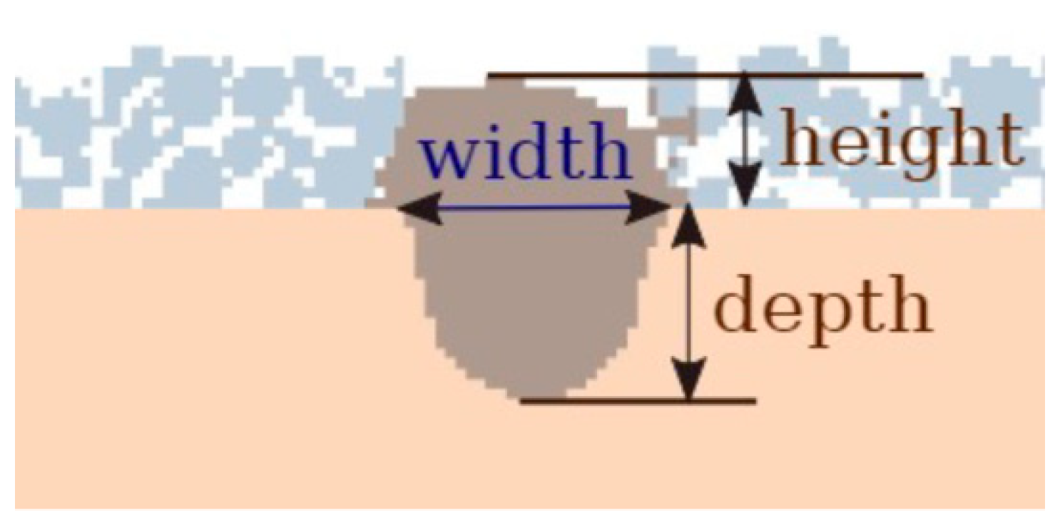 Since one of the goals of the study is to select the critical powder layer thickness at which sufficient weld penetration occurs to ensure low porosity, the calculation of the depth is of decisive importance in the context of applying the results to real-world problems.