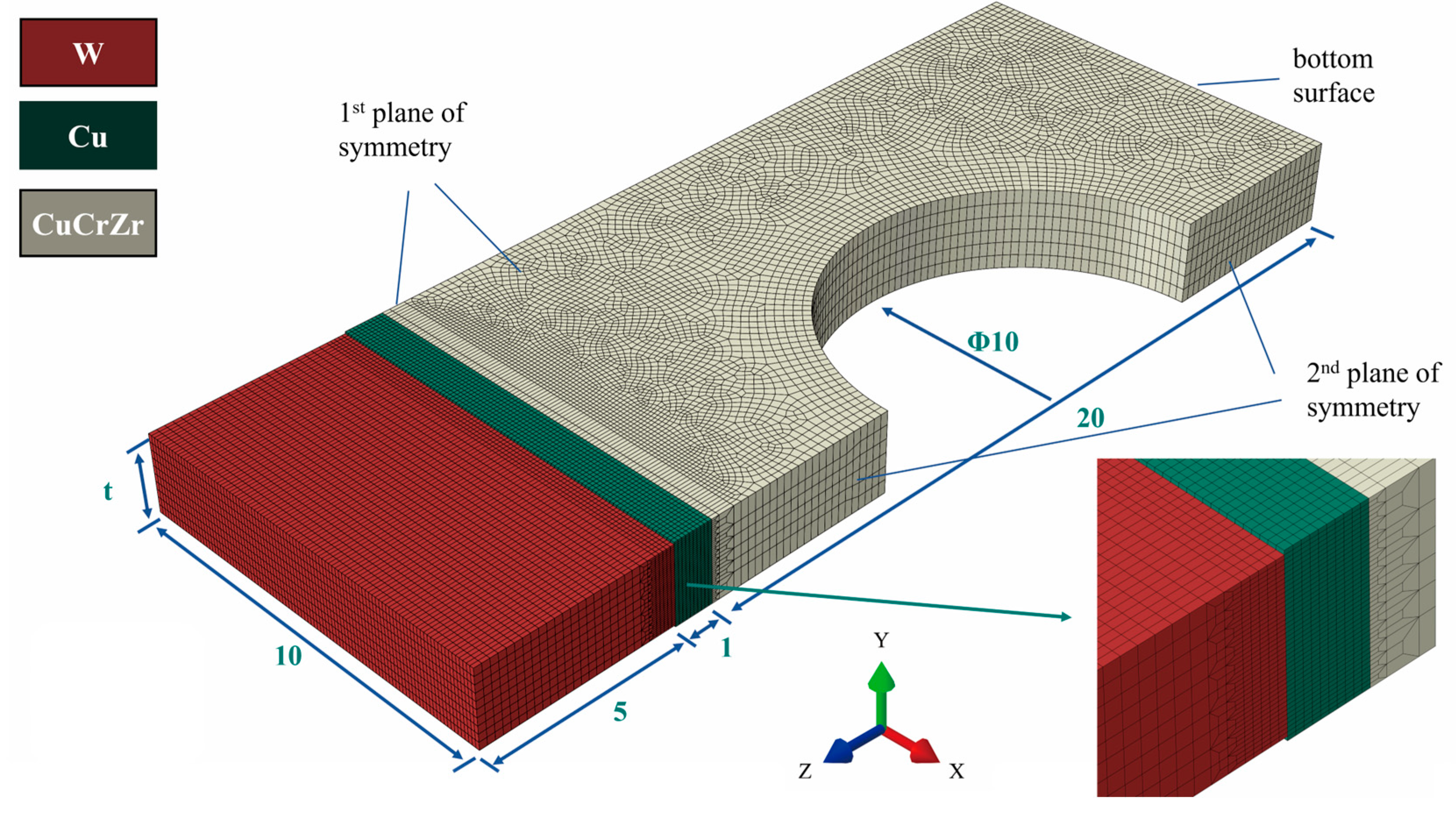- Wang, S.-M.; Li, J.-S.; Wang, Y.-X.; Zhang, X.-F.; Ye, Q. Thermal Shock Behavior Analysis of Tungsten-Armored Plasma-Facing Components for Future Fusion Reactor. Acta Metall. Sin.-Engl. Lett. 2018, 31, 515–522. [Google Scholar] [CrossRef]