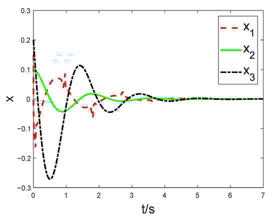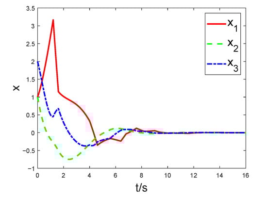 It should be emphasized that the matrix inequalities Equations (31)–(33) and Equation (40) are state-dependent, making them challenging to address using conventional linear matrix inequality techniques. Nevertheless, as demonstrated in this work, these state-dependent inequalities can be efficiently handled through SOS programming.