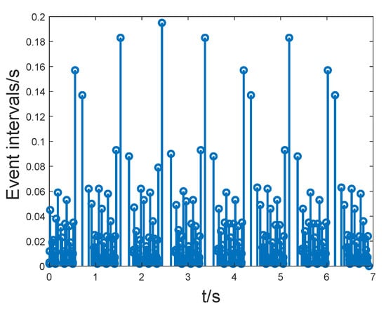 where represents the control gain matrix requiring design, h denotes the verification period, i.e., the fixed time interval at which the triggering condition is evaluated. The instant marks the k-th task release instant with . Consequently, the inter-event interval maintains the bounded condition , where .