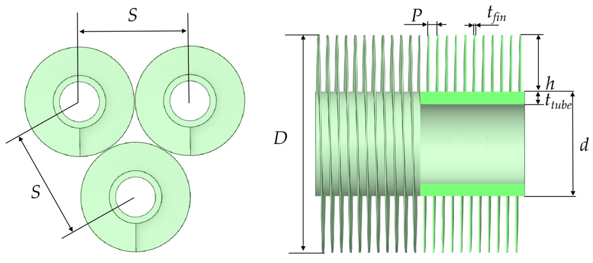 3.1. Numerical Modeling of Finned-Tube Heat Exchanger