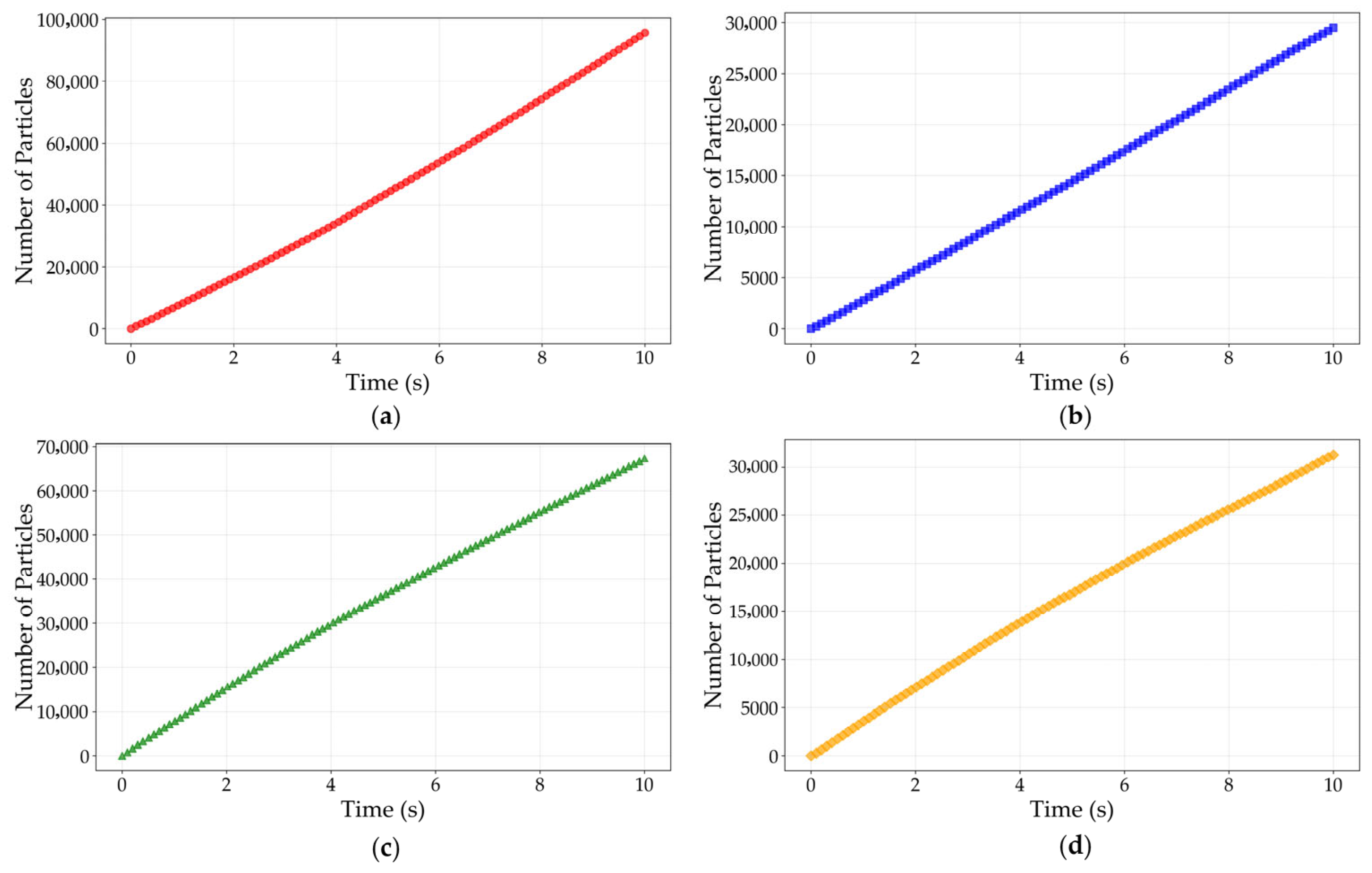 Moreover, since the dust accumulation is most pronounced at the tip of the first-layer fin (designated as Location 1), this study considers it as a critical region and defines a range of dust thickness values at this location for detailed analysis. To determine the number of dust particles corresponding to a given thickness at Location 1 and to further estimate the distribution characteristics and equivalent thicknesses at the other three designated orientations, a mathematical relationship is first established between the deposited dust volume and the equivalent thickness at each orientation. Based on the volume of a single dust particle and the statistically obtained number of particles at Location 1, the dust thickness at this location was inversely derived. Furthermore, by fitting trend curves to the dust distribution profiles across the four representative orientations, the number of particles corresponding to the other three orientations was extrapolated, and their respective equivalent thicknesses are subsequently determined. The detailed computational procedure is outlined as follows.