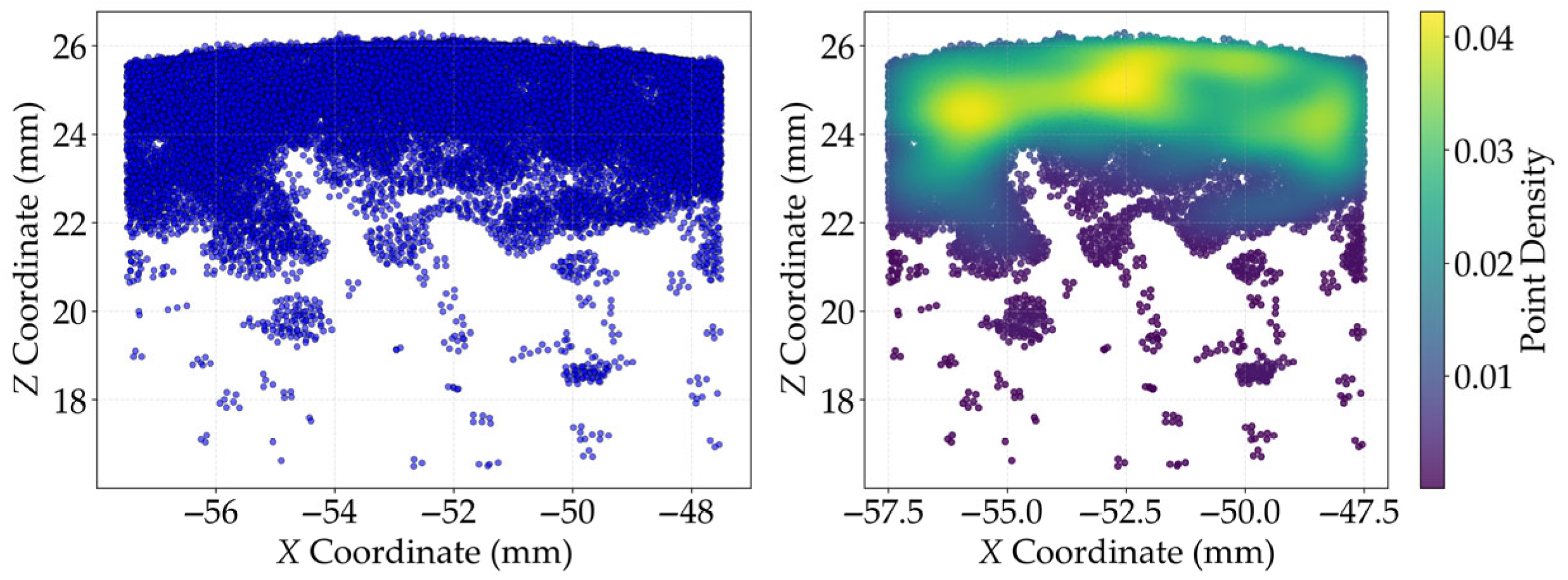 Figure 1, and calculating the number density of particles within discrete intervals along the Z direction. As shown in