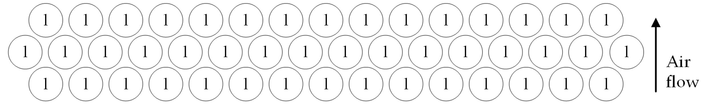 D is the characteristic length. Considering the minimum inlet velocity of 1 m/s, substituting the parameters into the equation yields a Reynolds number exceeding the critical threshold of 2300, indicating that the airflow around the fins is in a turbulent regime. Given the distinctly turbulent nature of the airflow entering the heat exchanger tube bundle, the SST k–omega turbulence model is employed in the simulation [