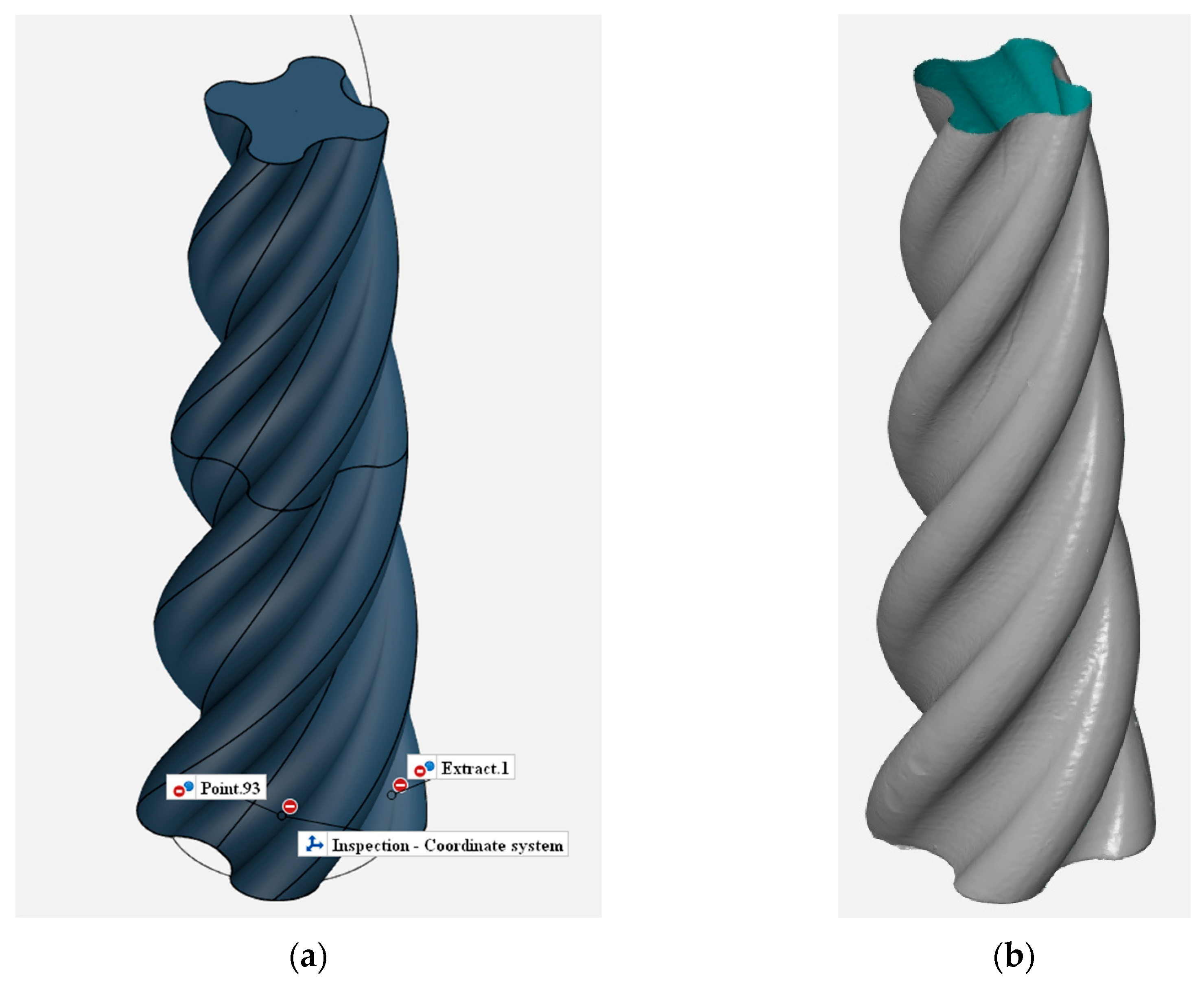 Figure 12b shows the scanned numerical model imported into the same inspection program.