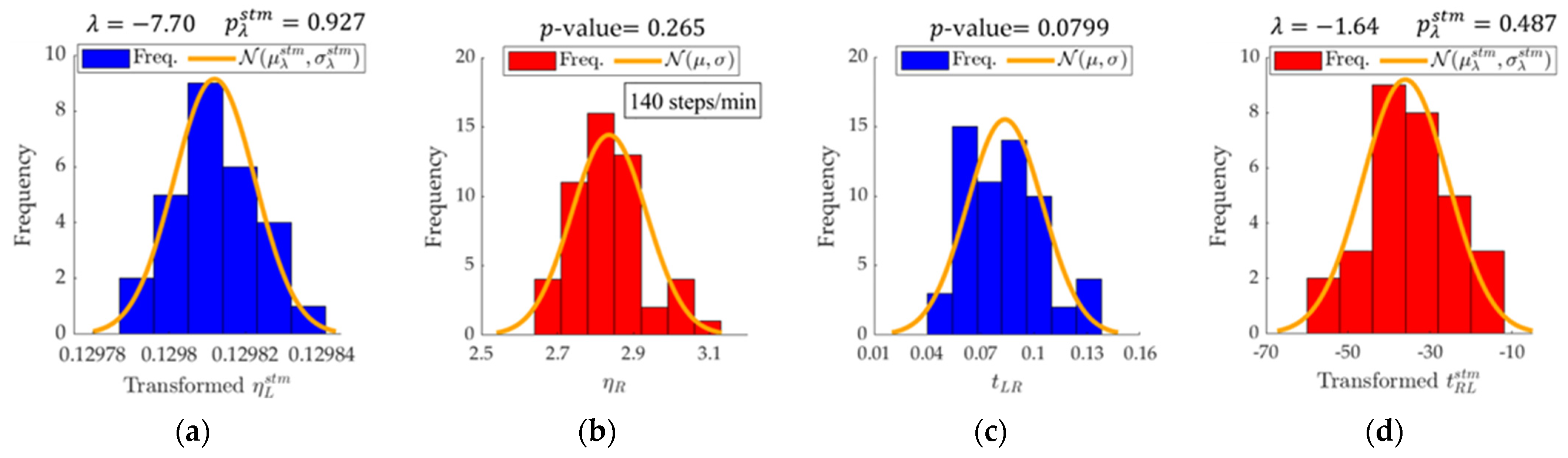 | Step Frequency (Steps/min) | Left Steps | Right Steps | ||