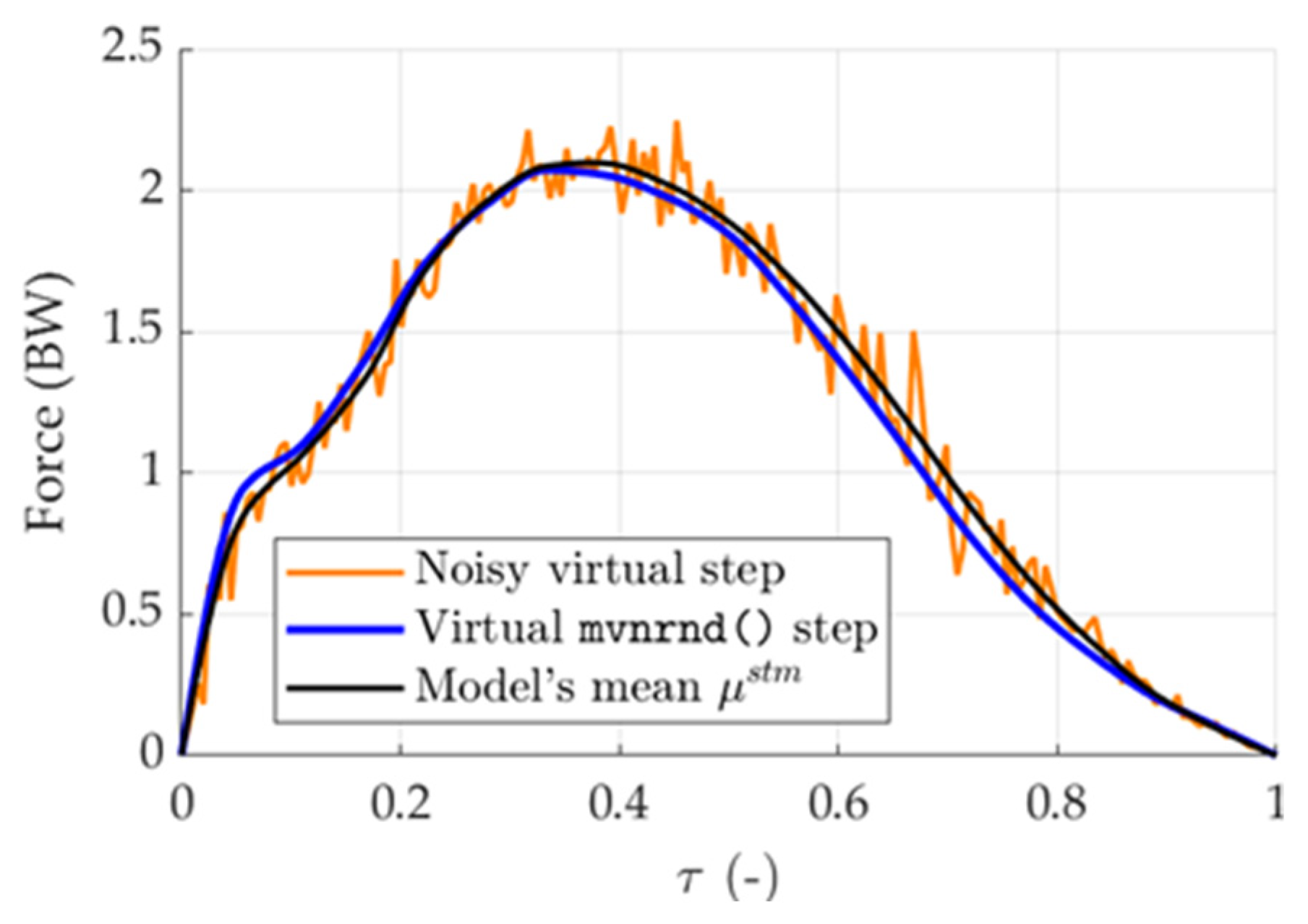 - Virtual step generation: virtual left and right rescaled steps were generated using their stm. multivariate normal distributions. Each virtual step was then rescaled in time by means of virtual scaling factors , drawn from their respective univariate normal distributions;