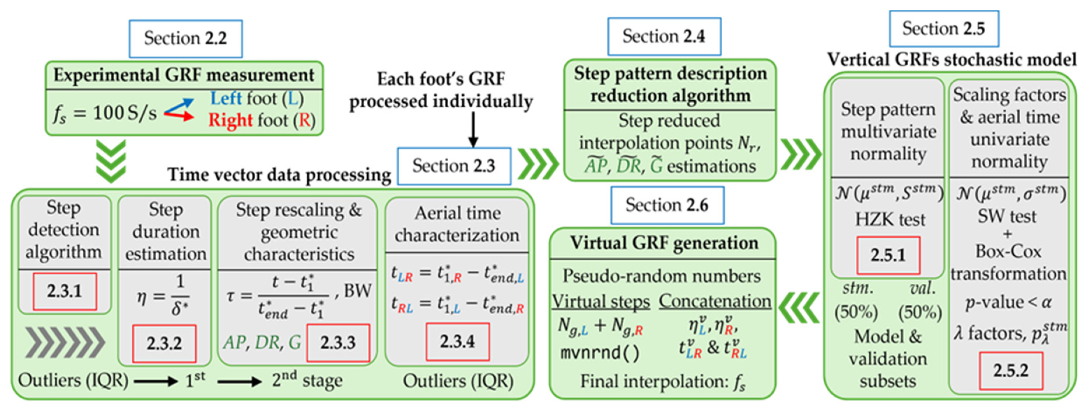 - The use of a rigorous statistical procedure to model the aforementioned pedestrian’s running GRFs without resorting to deterministic approaches or purely mathematical frameworks;