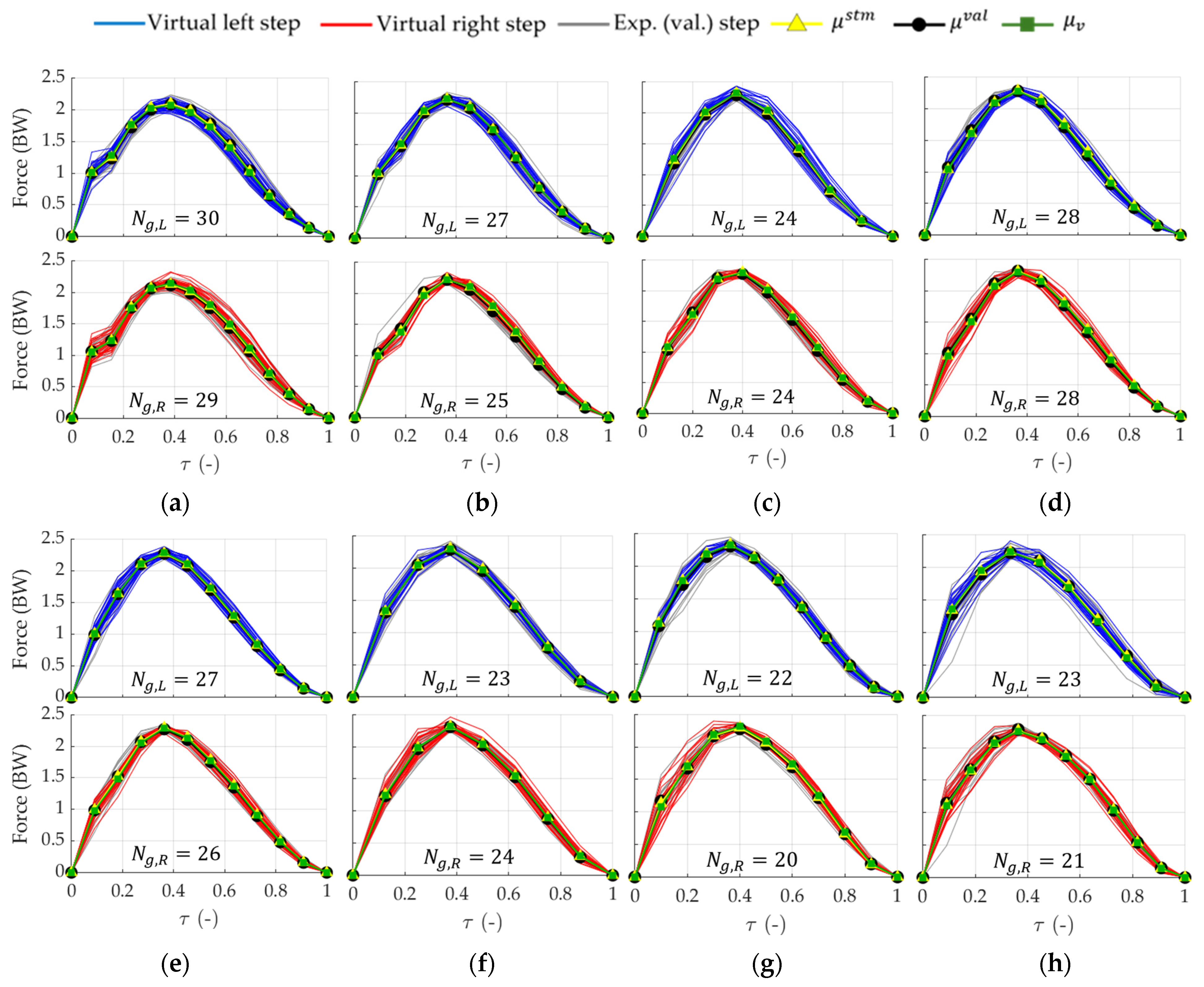 - Pancaldi, F.; Bassoli, E.; Milani, M.; Vicenzi, L. A statistical approach for modeling individual vertical walking forces. Appl. Sci. 2021, 11, 10207. [Google Scholar] [CrossRef]