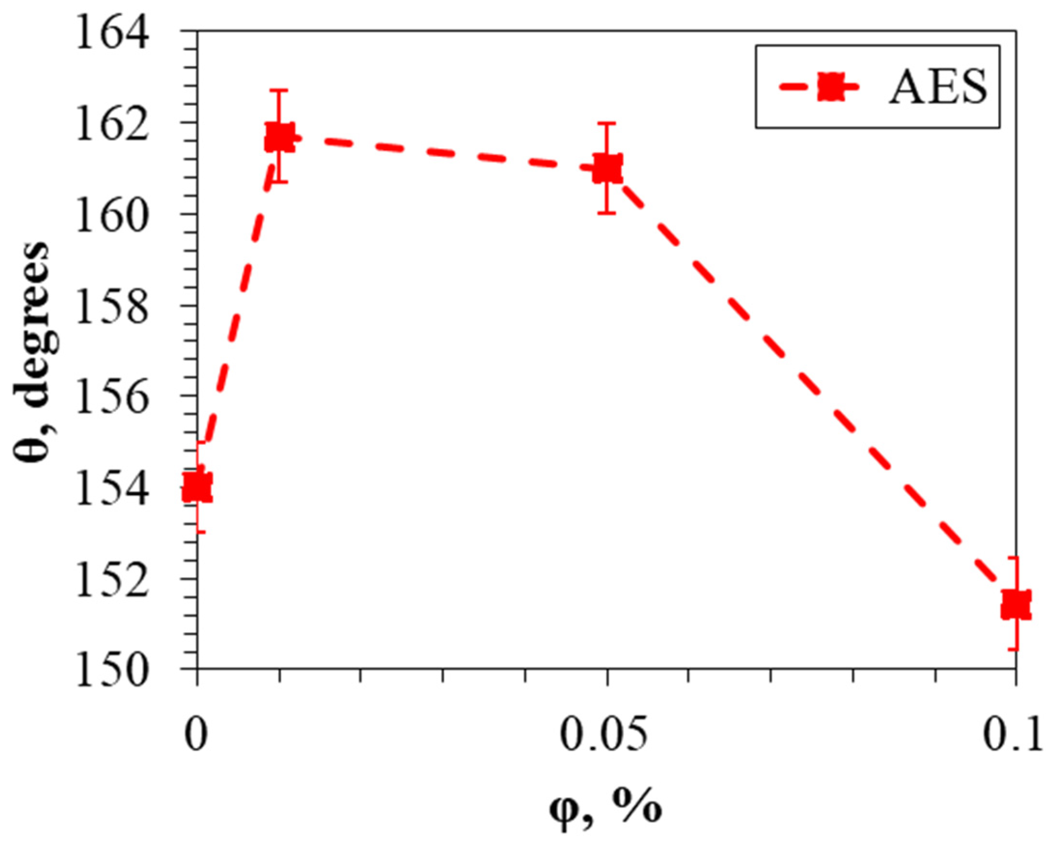 - Minakov, A.V.; Pryazhnikov, M.I.; Suleymana, Y.N.; Meshkova, V.D. An Experimental Study of the Effect of the Addition of Silicon Oxide Nanoparticles on the Wettability Characteristics of Rocks with Respect to Oil. Tech. Phys. Lett. 2020, 46, 1238–1240. [Google Scholar] [CrossRef]