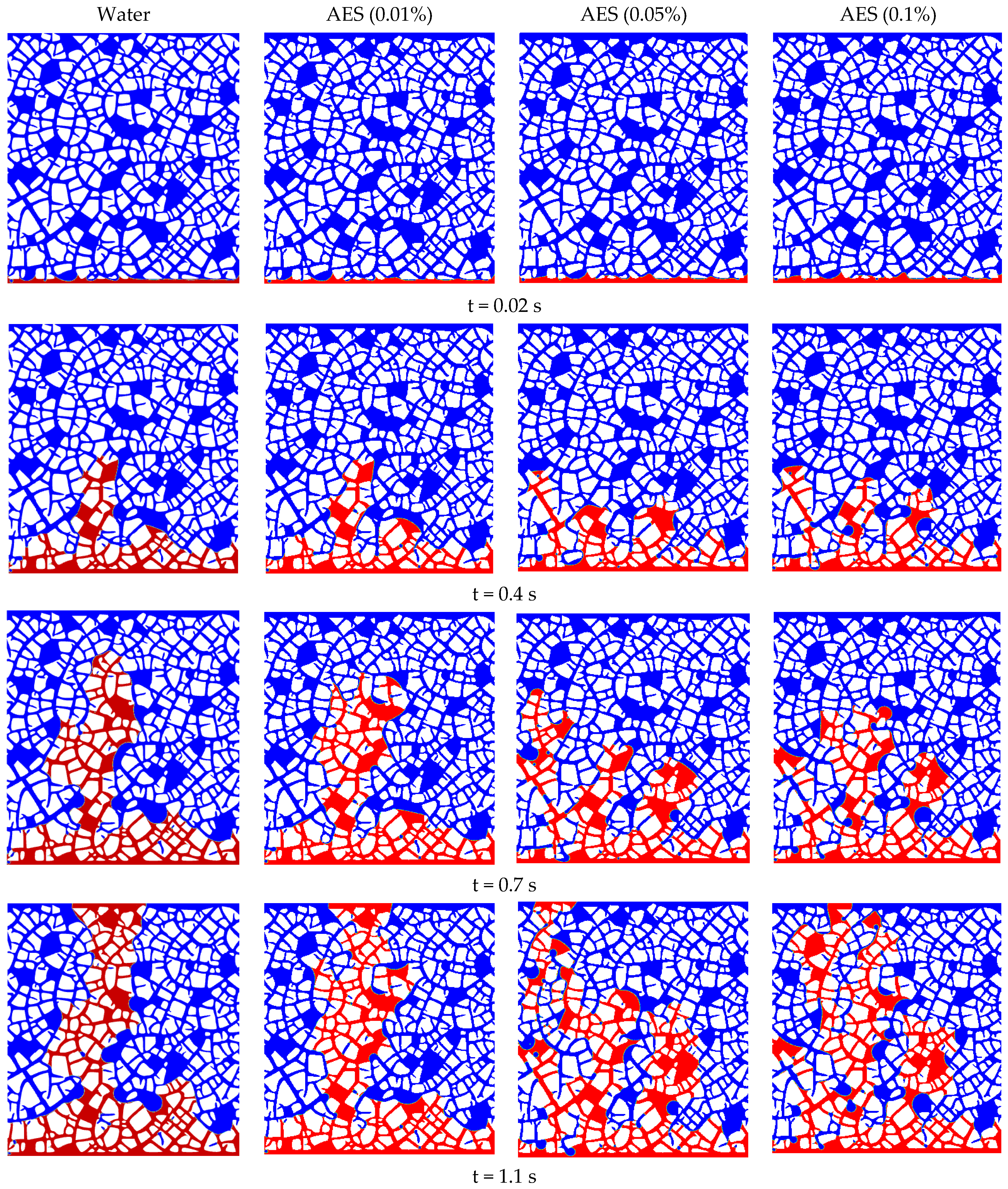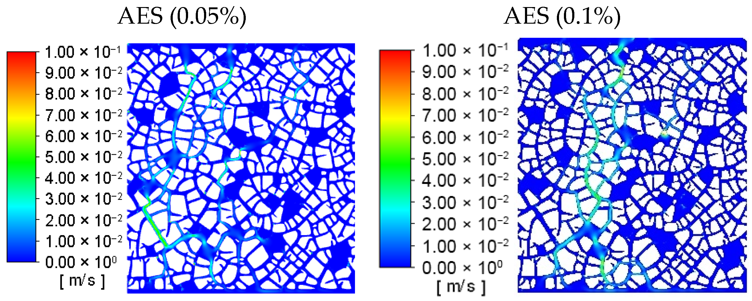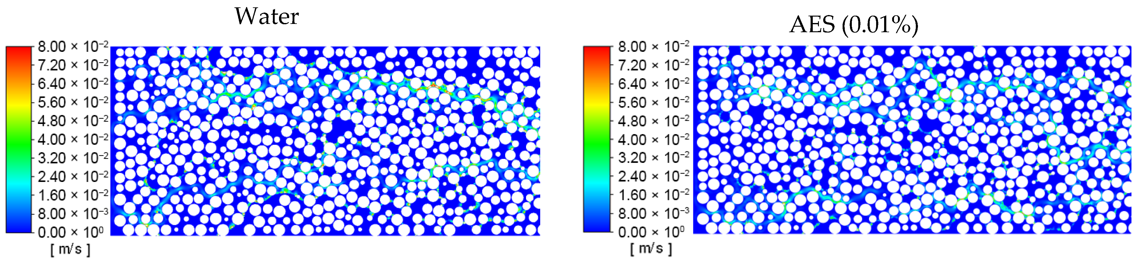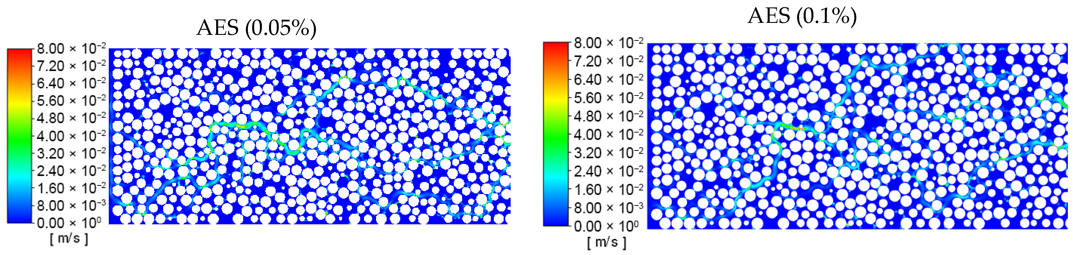 5.1. Investigation of the Effect of Surfactant Concentration on the Oil Displacement Process in Porous Media