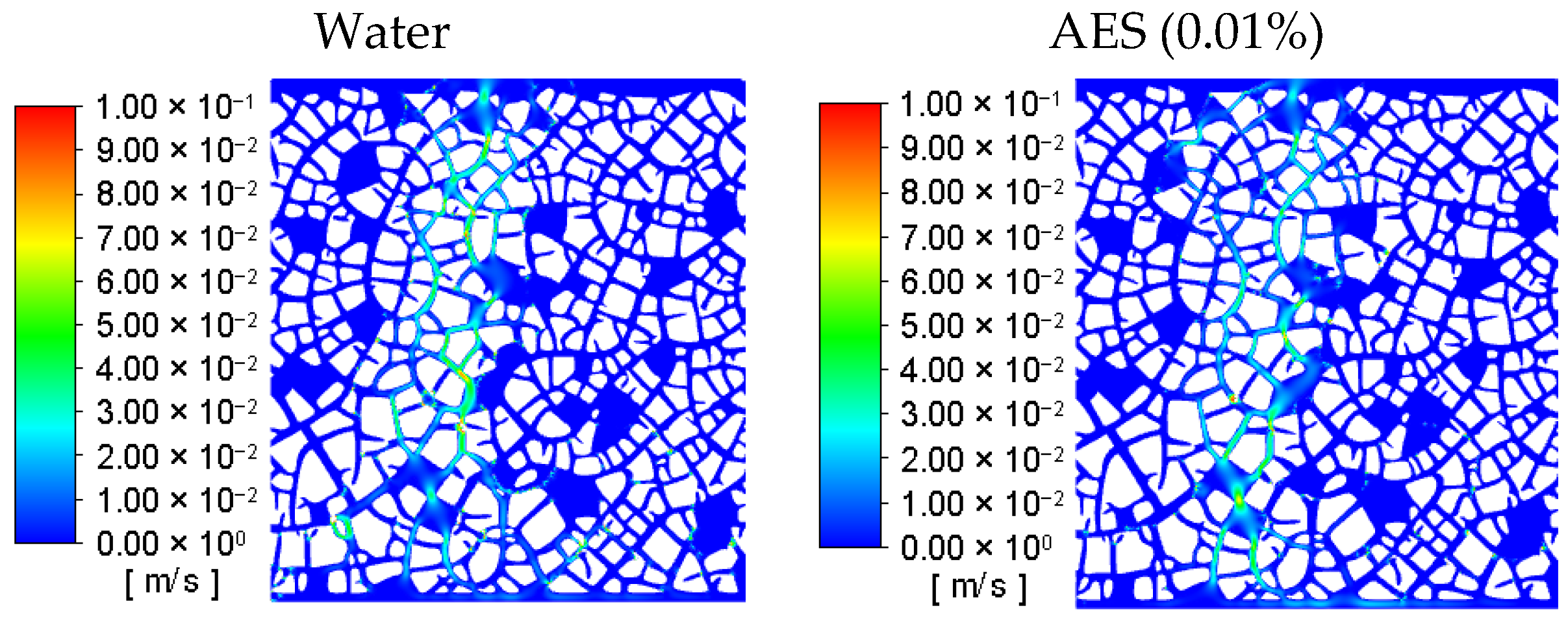 - Guzei, D.; Skorobogatova, A.; Ivanova, S.; Minakov, A. A Computational Study of Polymer Solutions Flow Regimes during Oil Recovery from a Fractured Model. Appl. Sci. 2023, 13, 11508. [Google Scholar] [CrossRef]