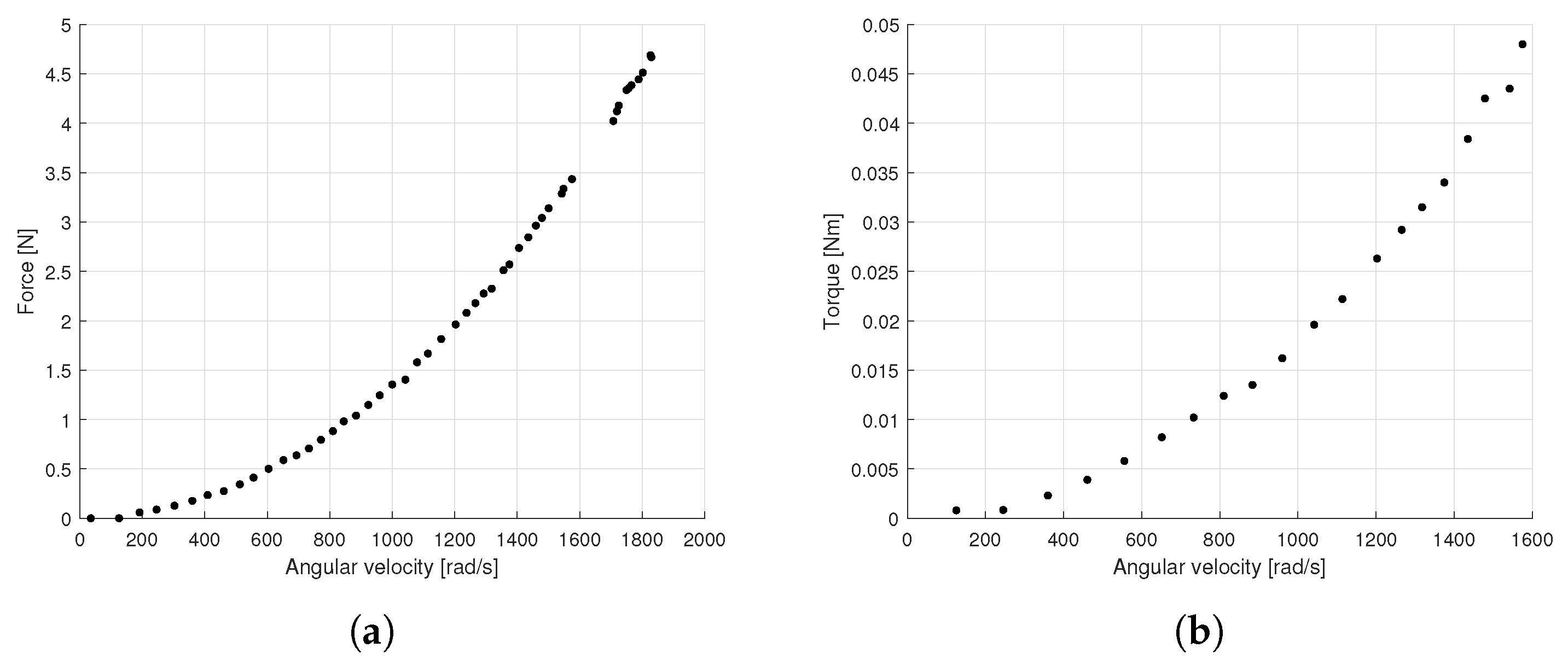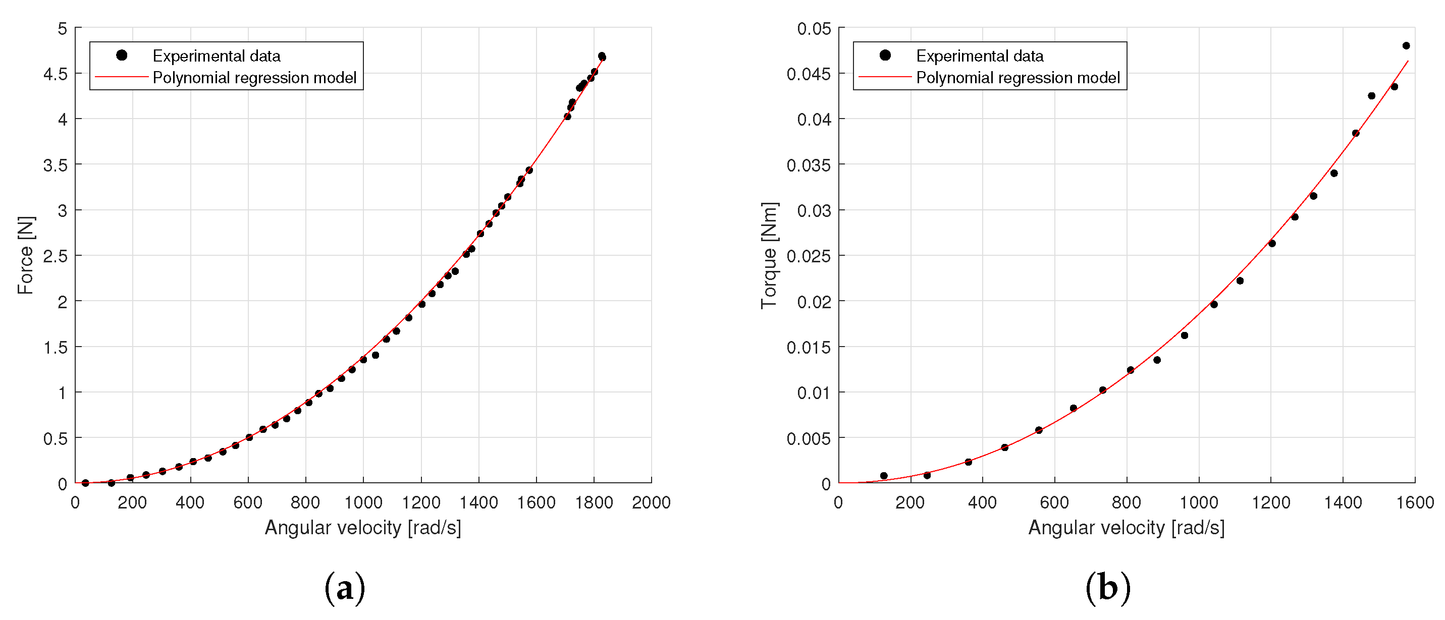 19], where thrust force and induced torque data from the quadrotor propeller were measured along with their corresponding motor rotational speeds, as presented in