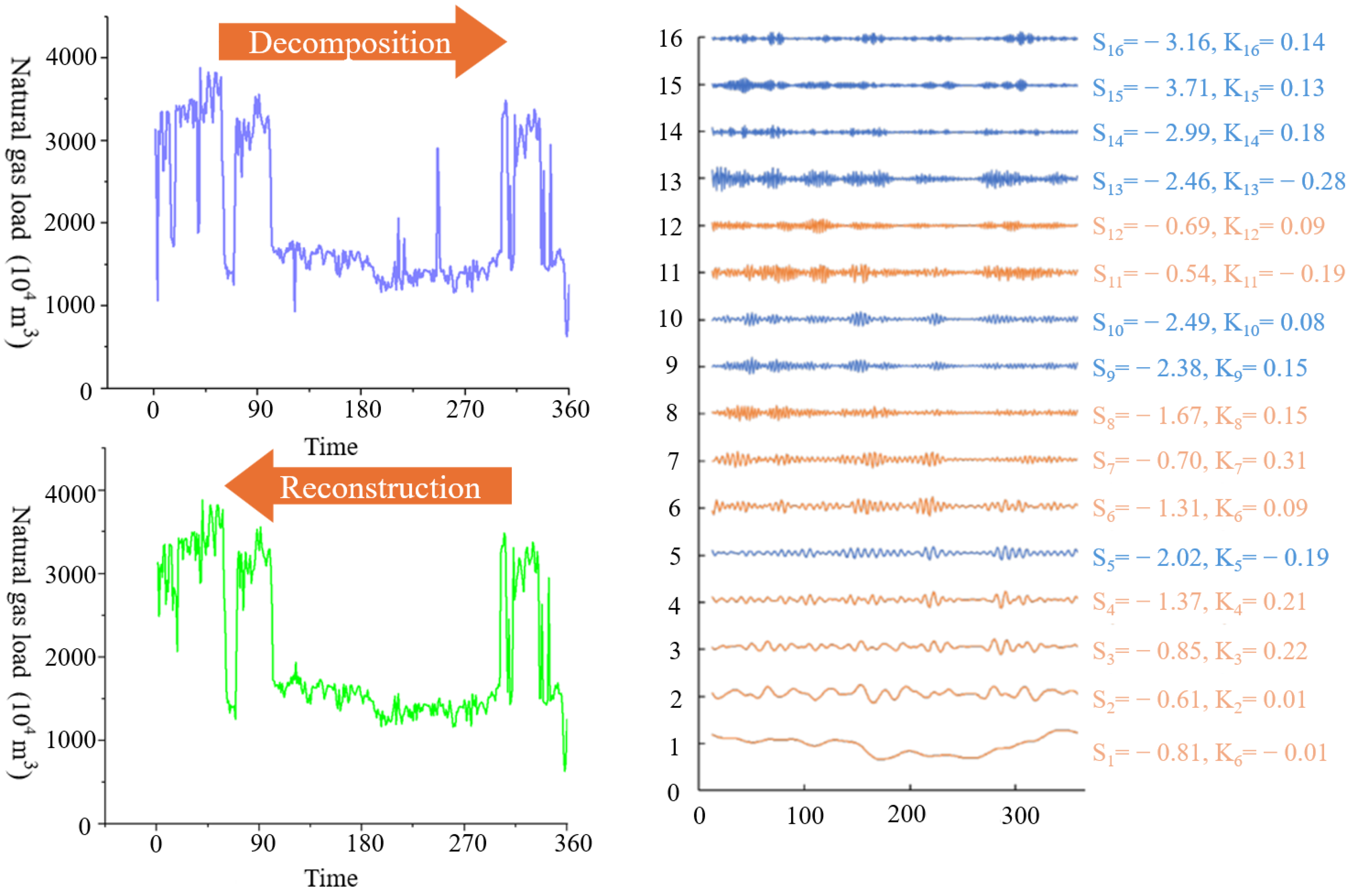 Figure 4, the original data is first decomposed into one low-frequency sub-series and several high-frequency sub-series. Then, the logarithmic skewness