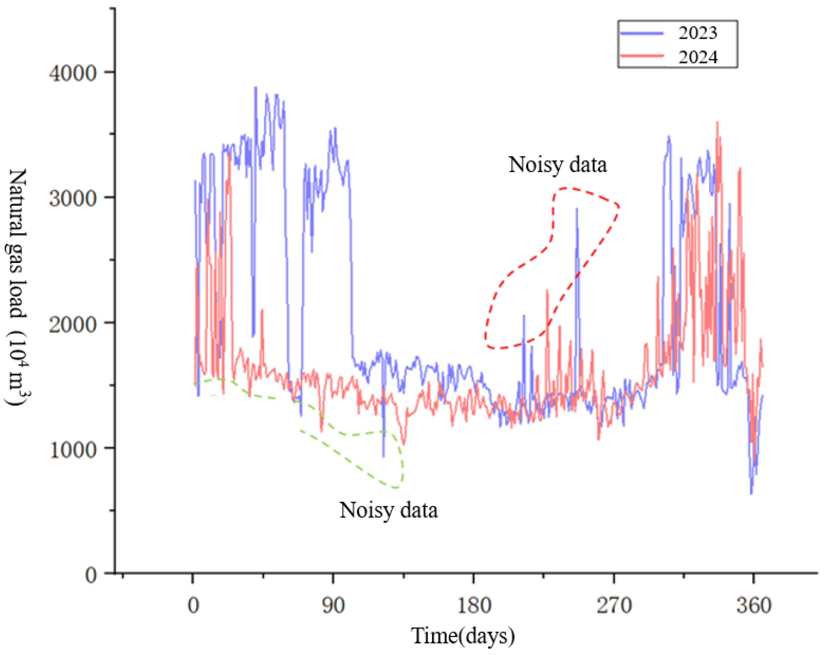 Due to stochastic influences, historical NGLF data often contains numerous outliers. These outliers can interfere with the underlying patterns of the load data, disrupt the similarity of gas loads within the same period, and consequently degrade the model’s forecasting accuracy [