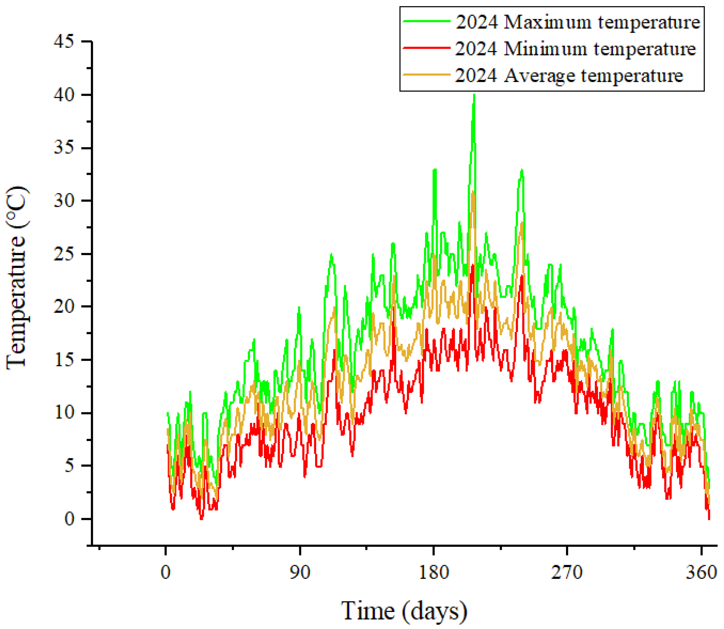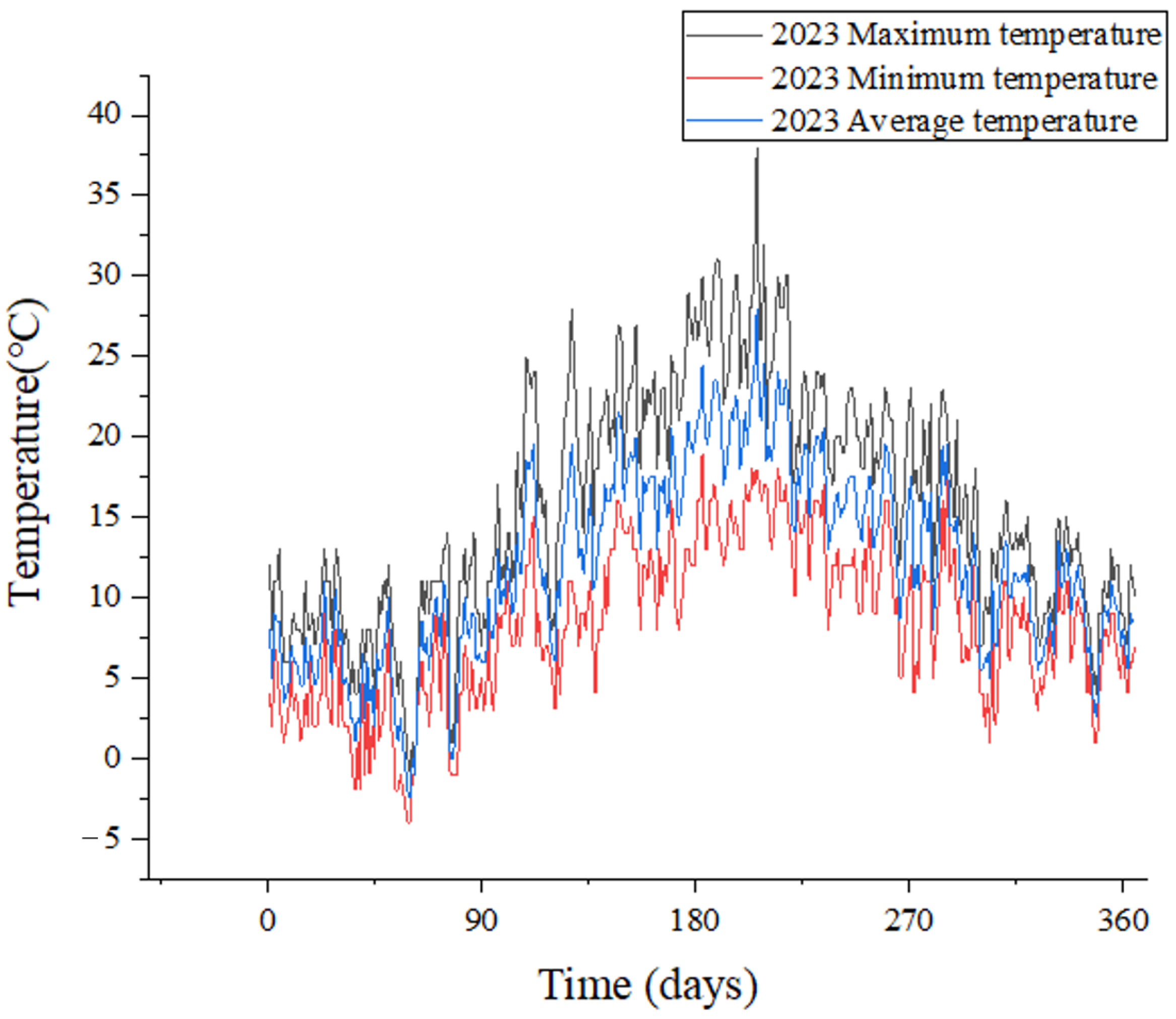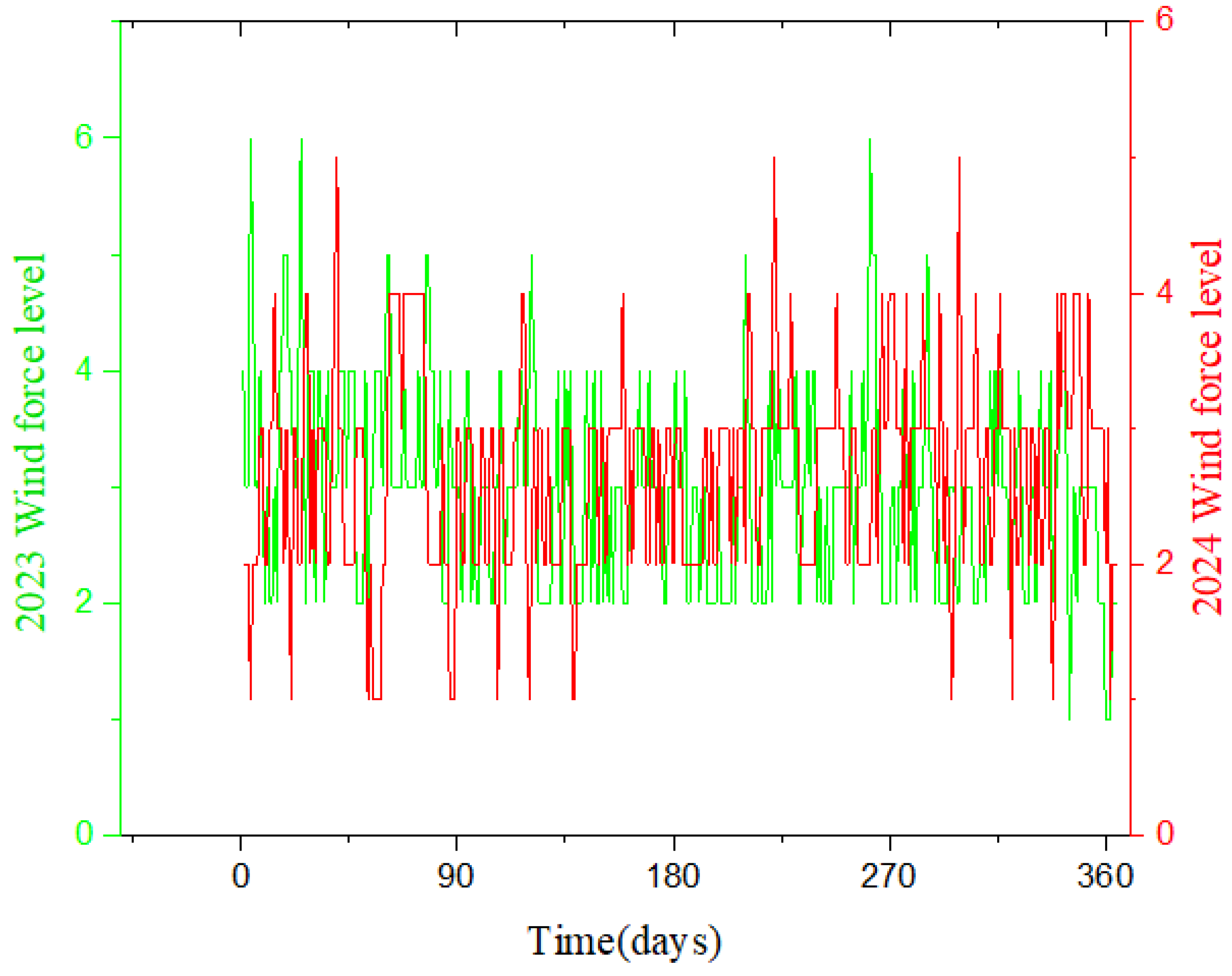 The analysis from the improved PCCA algorithm confirms that meteorological factors are the primary drivers influencing the natural gas load in the studied city. In different seasons, gas consumption is inextricably linked to changes in factors such as temperature and wind level. Consequently, meteorological factors are the foremost choice for short-term NGLF. Specific factors include daily maximum temperature, daily minimum temperature, daily average temperature, and wind level. This paper collected and organized relevant temperature and wind data for a specific city in China for the years 2023 and 2024, as shown in