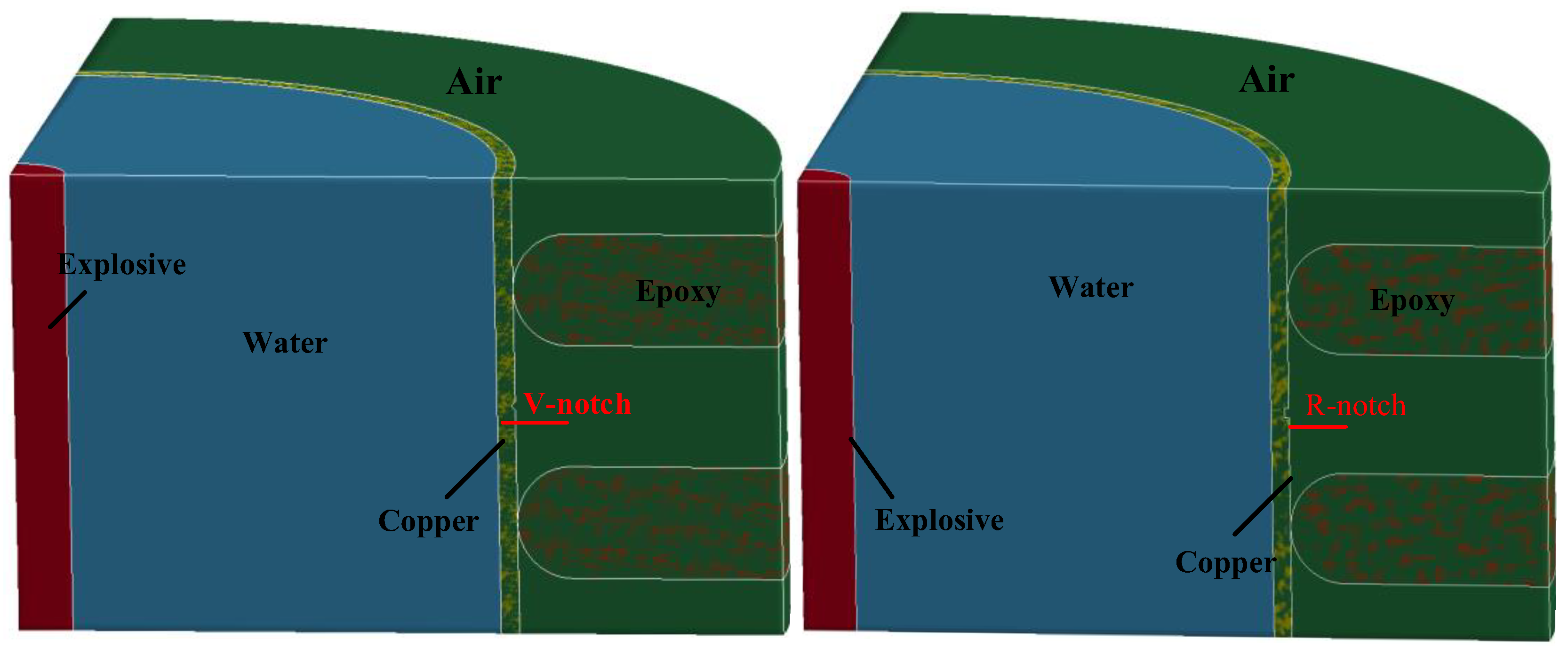 - Liu, M.T.; Ren, G.; Fan, C.; Tang, T.; Wang, X.; Hu, H. Experimental and numerical studies on the expanding fracture behavior of an explosively driven 1045 steel cylinder. Int. J. Impact Eng. 2017, 109, 240–252. [Google Scholar] [CrossRef]