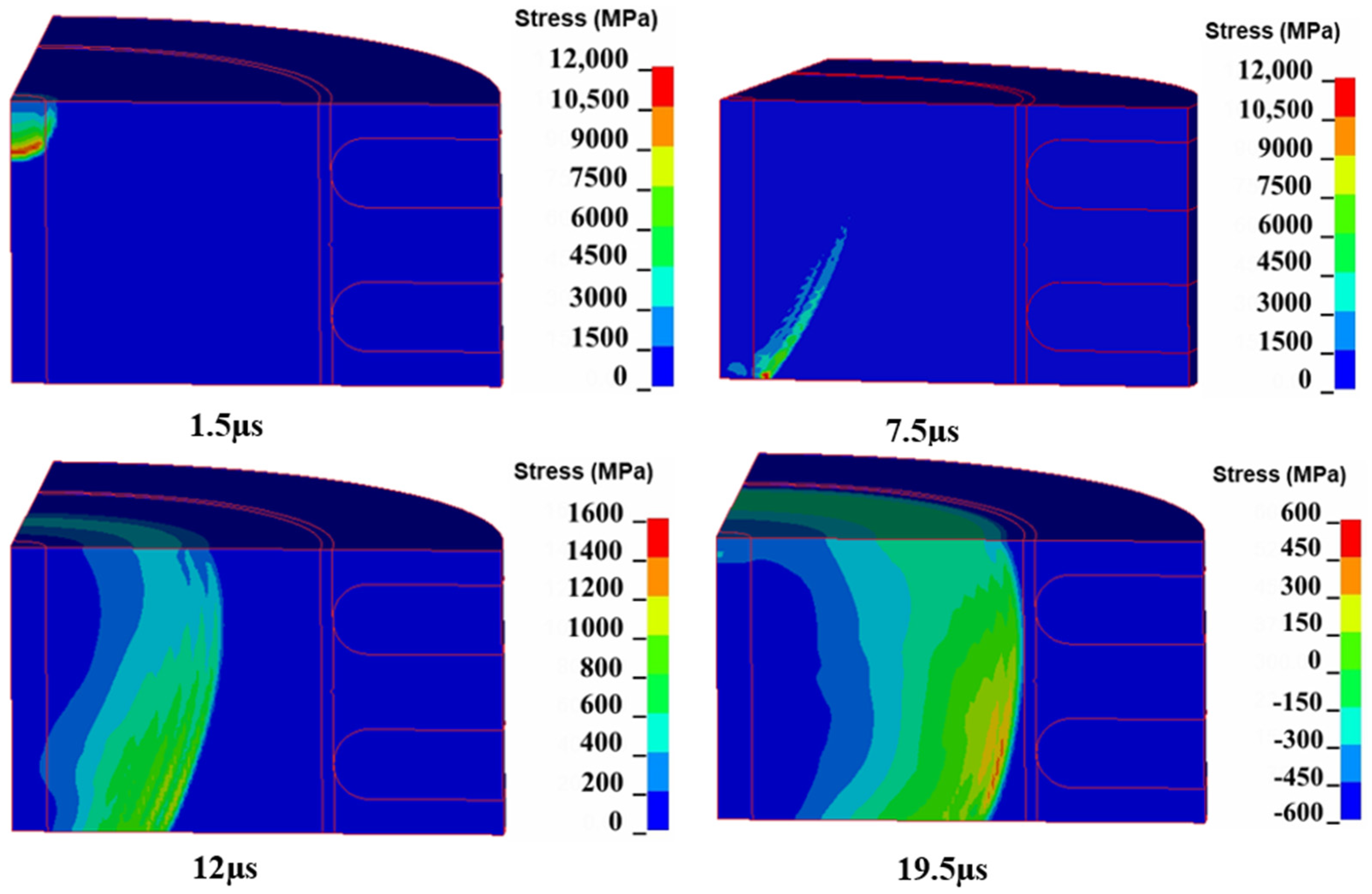 - Mao, W.S.; Zhong, M.; Xie, X.; Ma, H.; Yang, G.; Fan, L. Dynamic response of a hollow cylindrical shell subjected to a near-field underwater explosion. J. Appl. Phys. 2024, 135, 224701. [Google Scholar] [CrossRef]