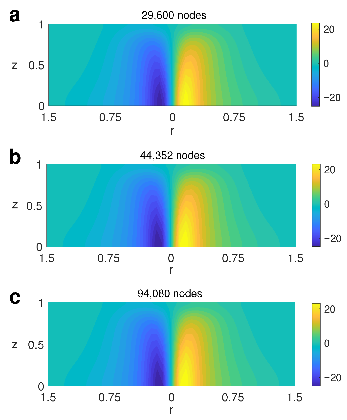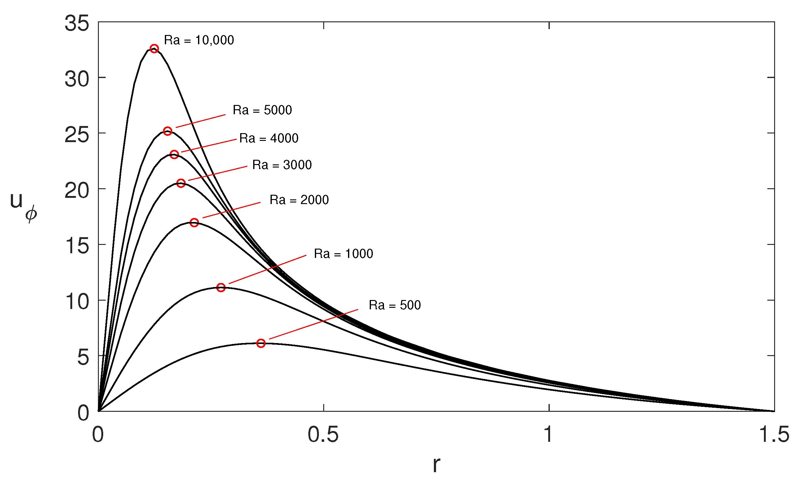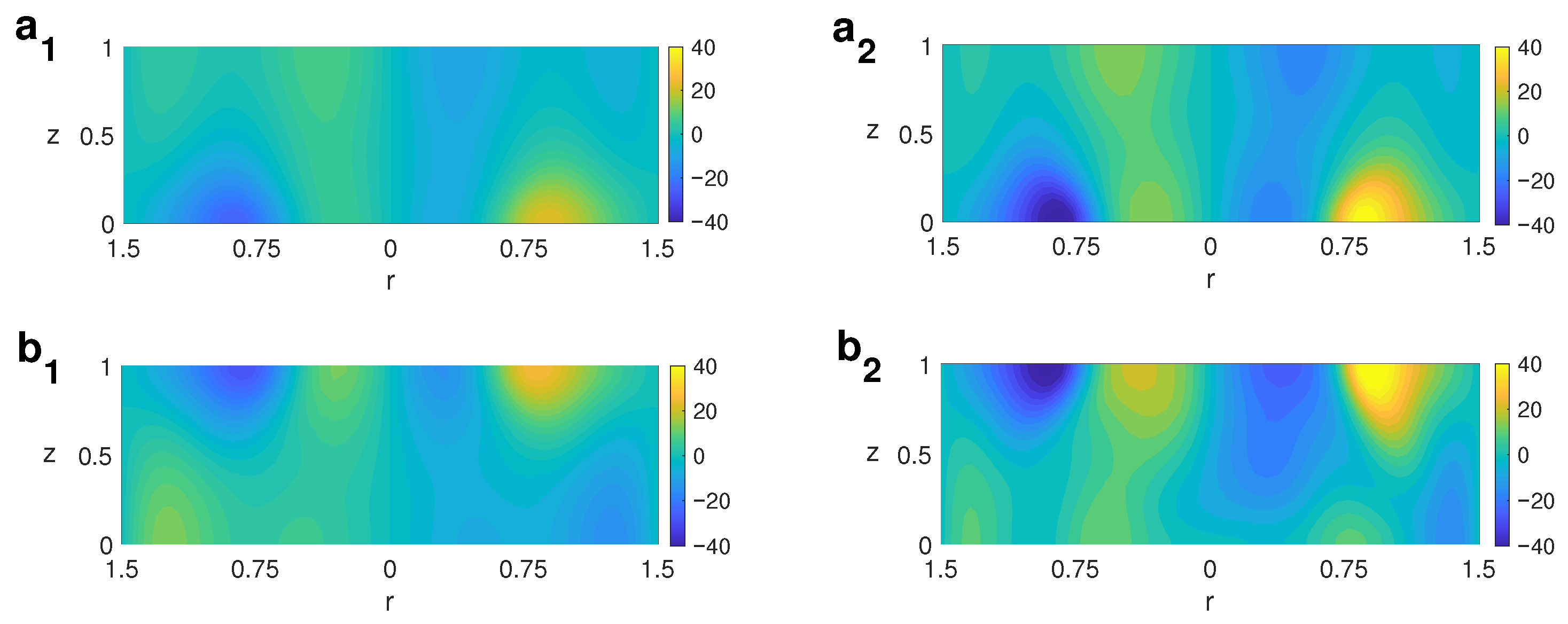 - Castaño, D.; Navarro, M.C.; Herrero, H. Double vortices and single-eyed vortices in a rotating cylinder under thermal gradients. Comput. Math. Appl. 2017, 70, 2238–2257. [Google Scholar] [CrossRef]