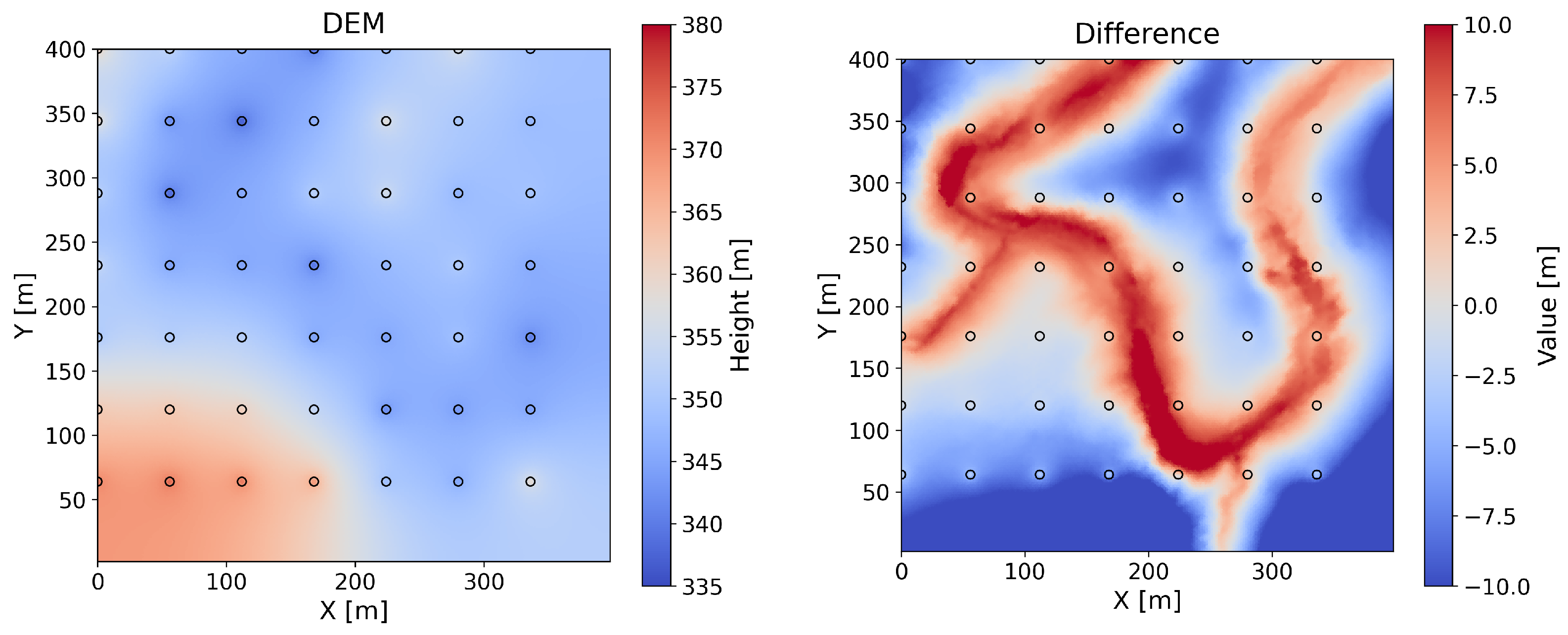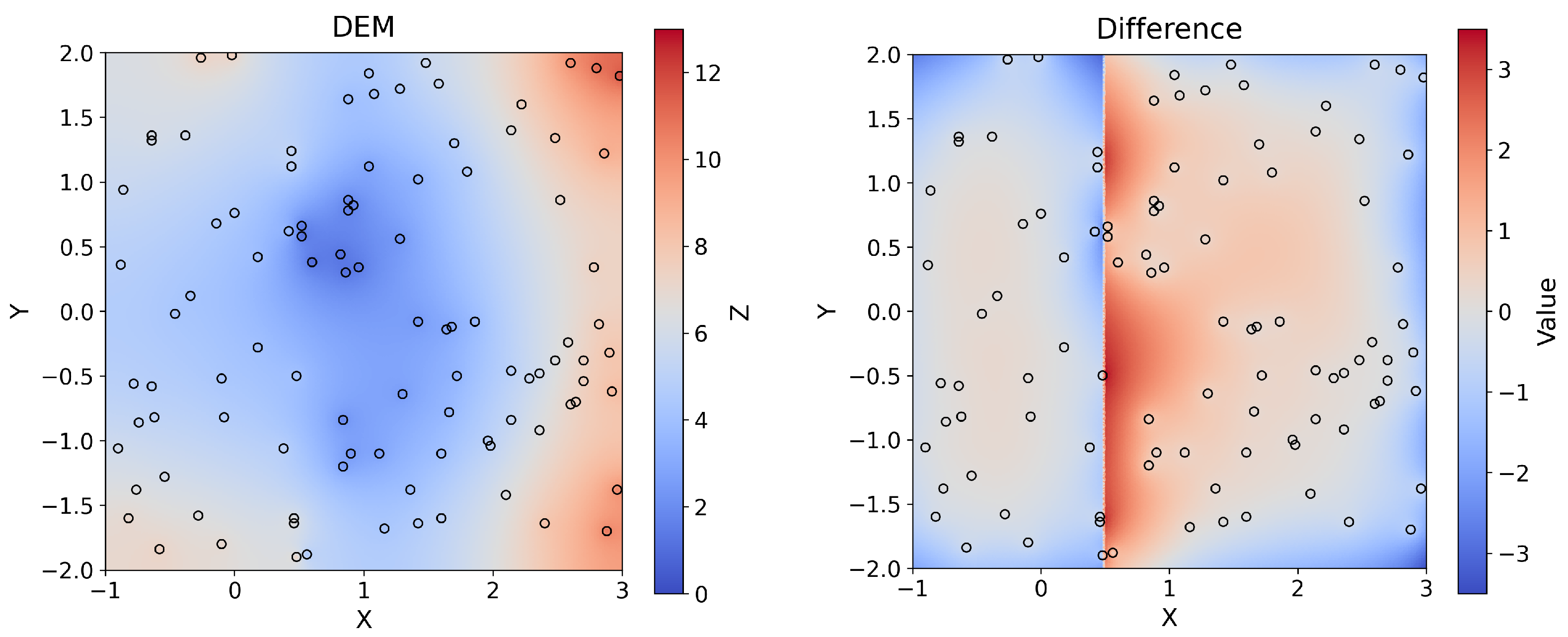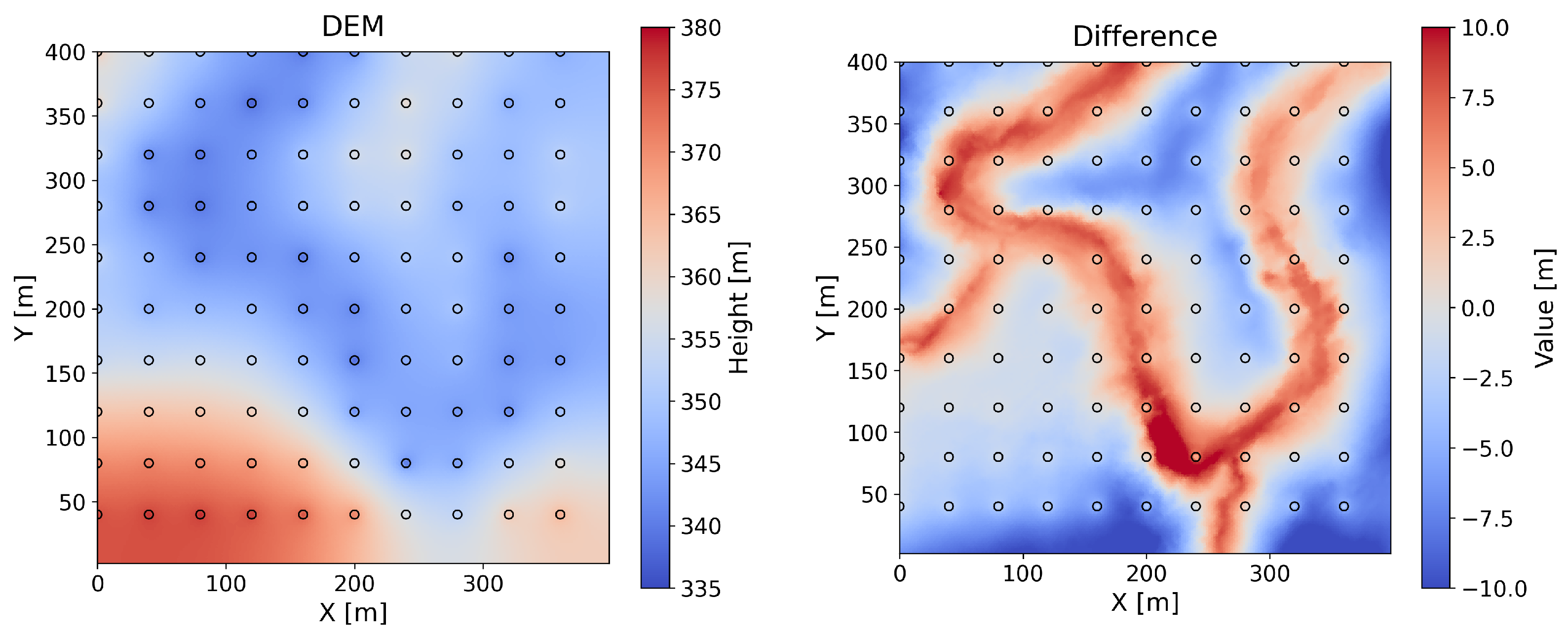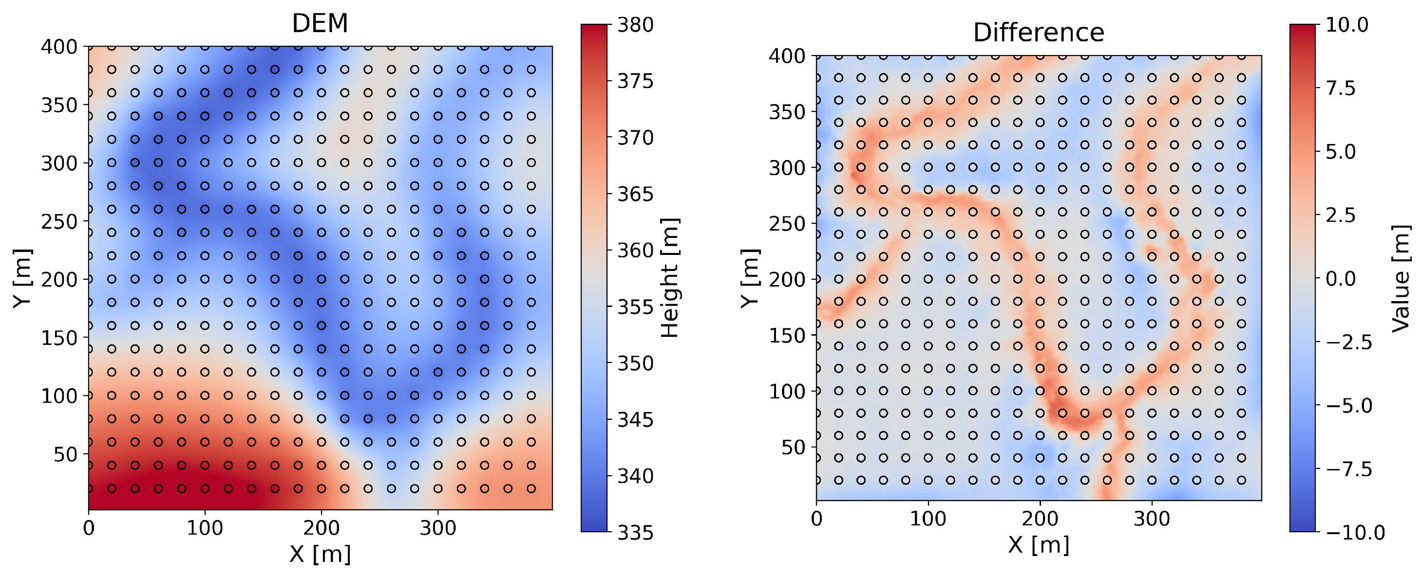 6] can provide acceptable results for well-distributed datasets, but they often face limitations when the data are irregularly spaced or when the terrain exhibits complex gradients [
