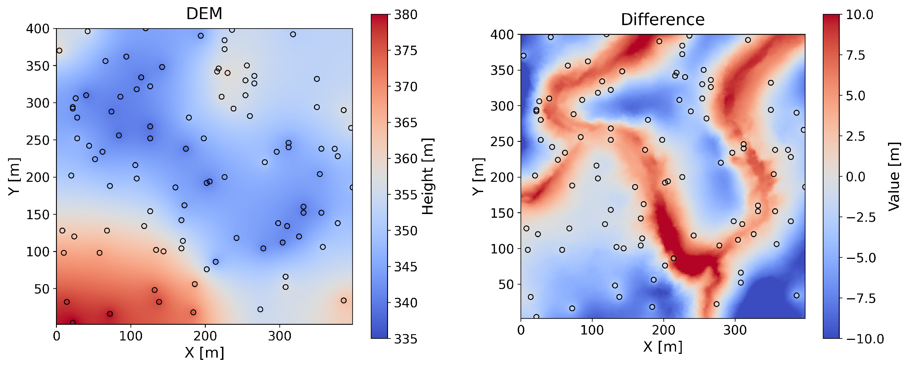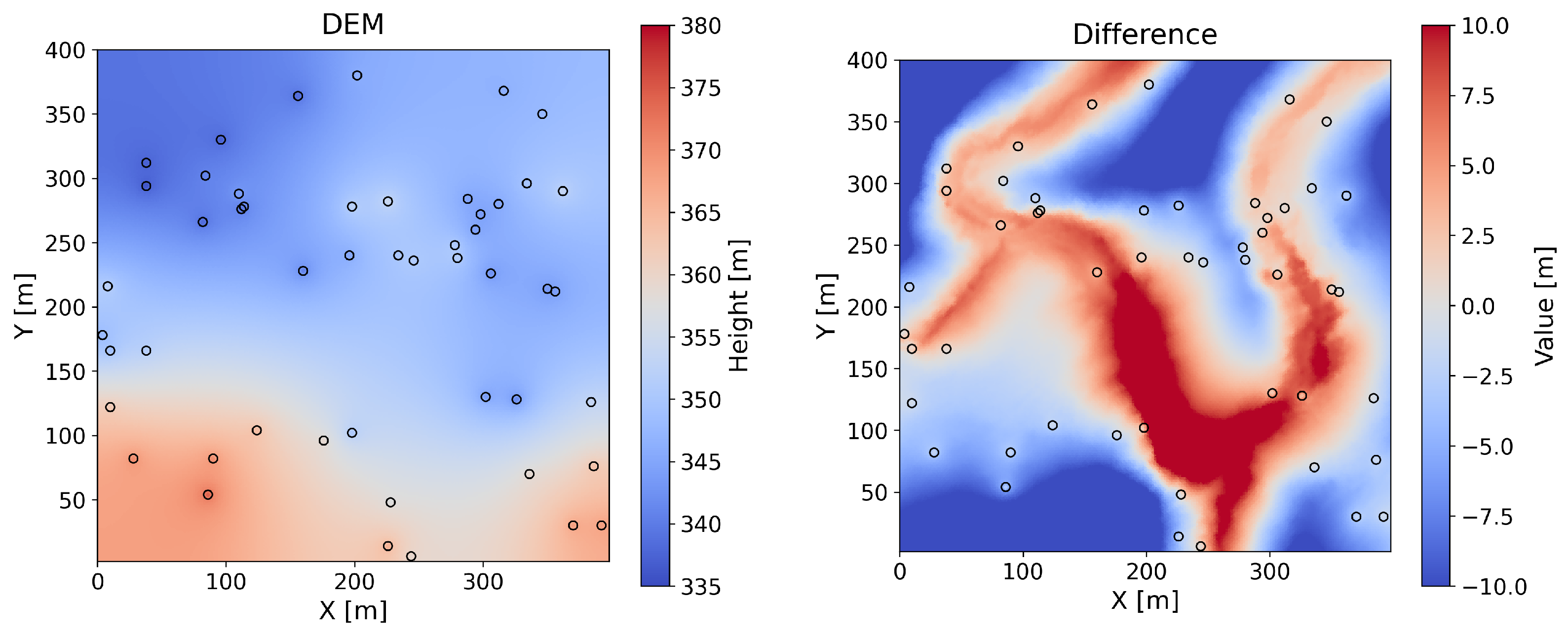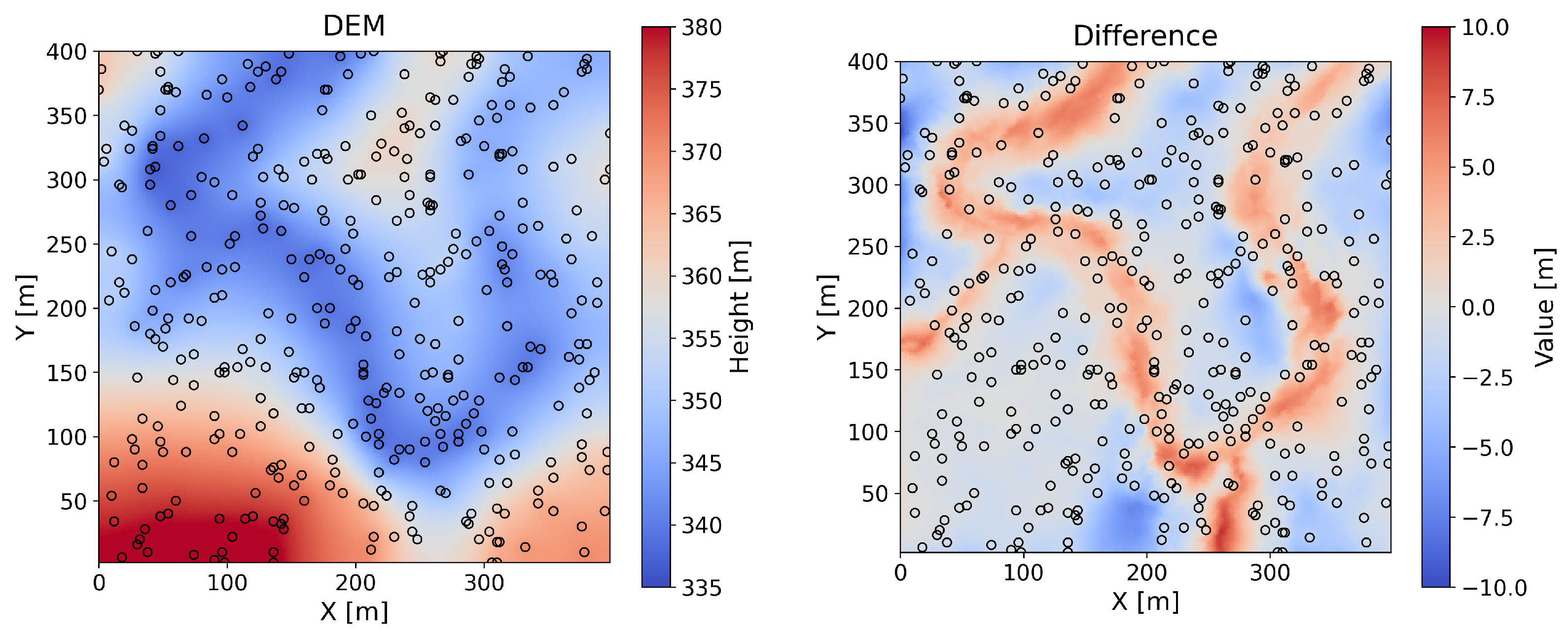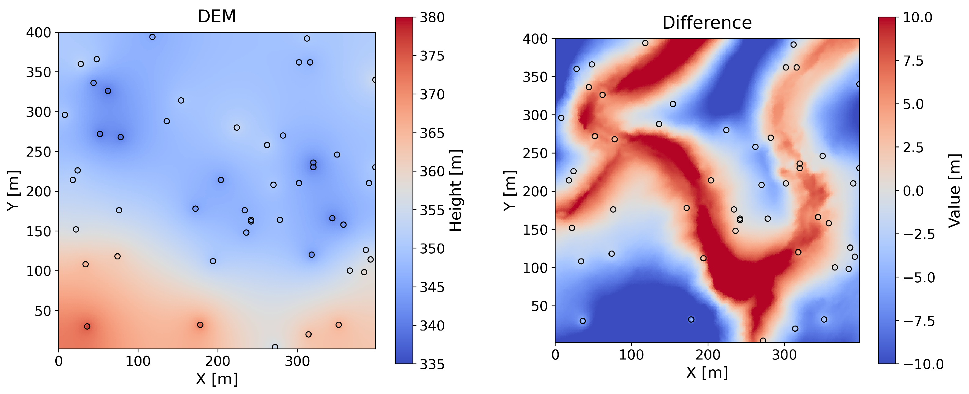 6] can provide acceptable results for well-distributed datasets, but they often face limitations when the data are irregularly spaced or when the terrain exhibits complex gradients [
