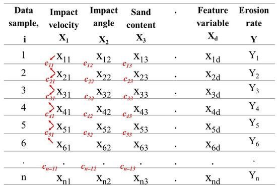 These seven factors (material type, material hardness, particle size, impact angle, velocity, sand concentration, and fluid type) were chosen because they are universally recognised in erosion science as the primary drivers of erosion rate. Material hardness determines a polymer’s resistance to surface damage and energy dissipation during impact. Impact velocity and angle, together with particle size and sand concentration, govern the energy, frequency, and orientation of erosive interactions, directly affecting the severity and mode of material loss. Fluid type influences both the transport of abrasive particles and the impact regime. These parameters are not only the most influential according to the tribological literature but are also those that are most consistently and comprehensively reported across the available experimental studies in the literature. Their inclusion ensures that the resulting data-driven models are both physically meaningful and broadly applicable within a wide range of erosion conditions.
