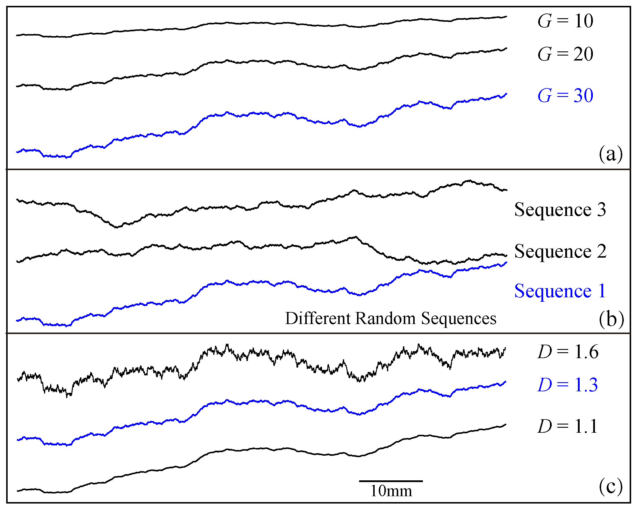 2.1. Weierstrass-Mandelbrot Function and Profiles Generation Method