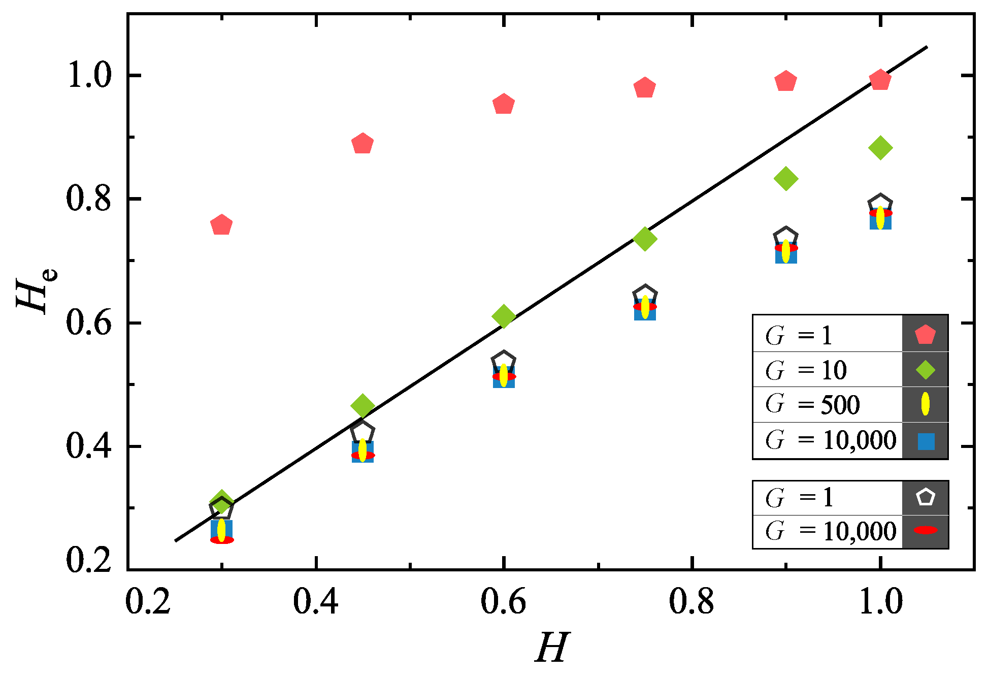 - Dong, J.; Wu, Y.; Jin, Y.; Liu, S.; Zheng, J.; Dong, W. Morphology differences between fractional Brownian motion and the Weierstrass-Mandelbrot function and corresponding Hurst evaluation. Geomech. Geophys. Geo-Energy Geo-Resour. 2023, 1, 35. [Google Scholar] [CrossRef]