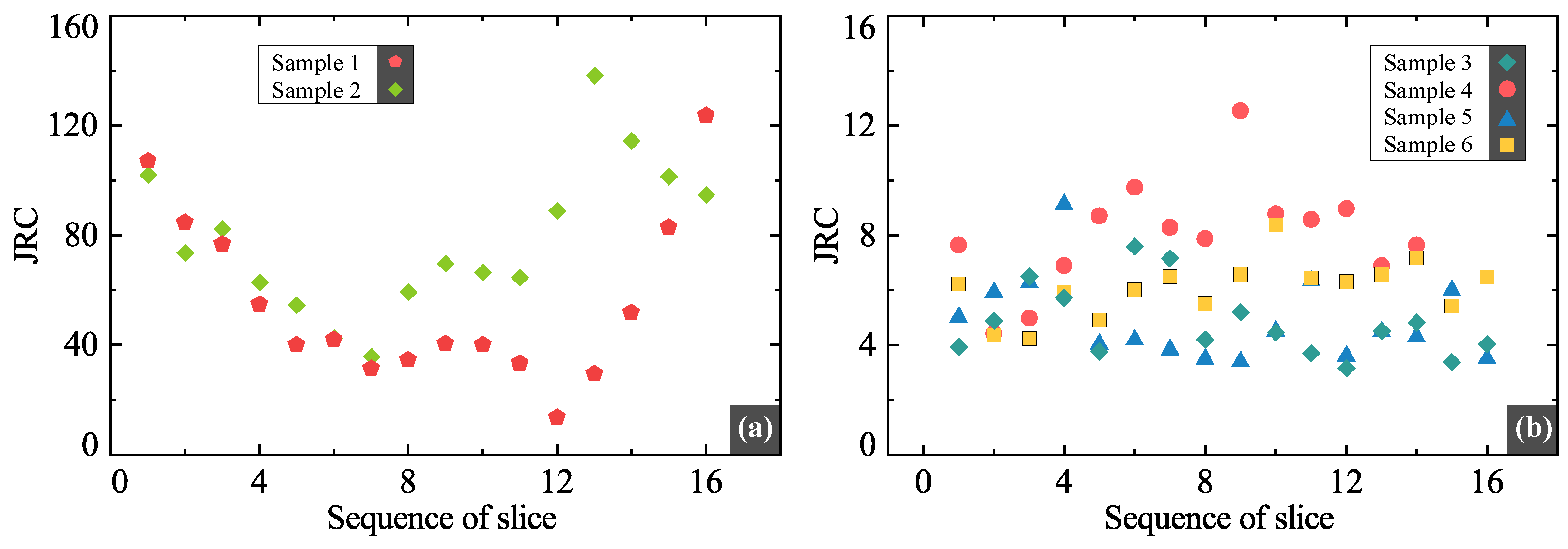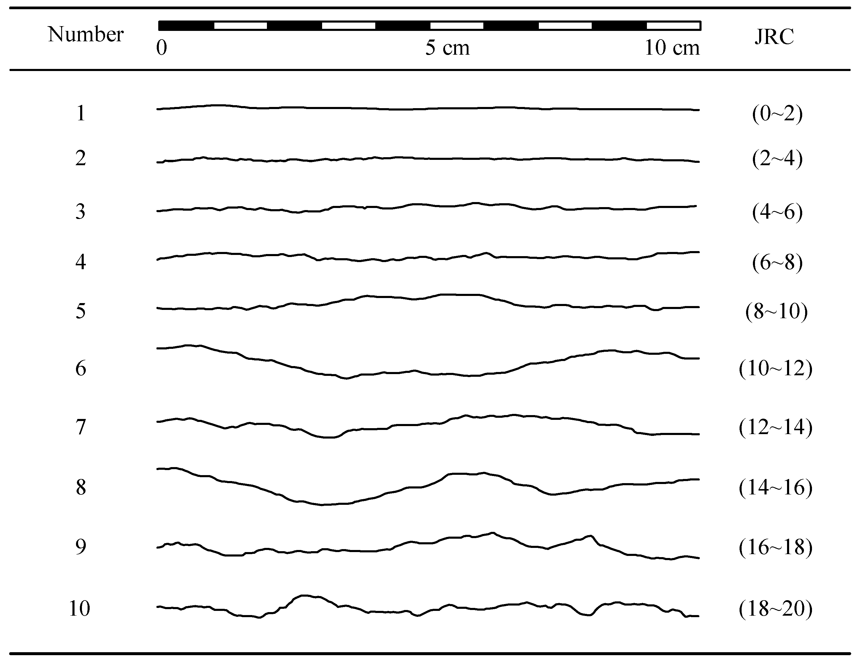- Li, R.; Xiao, W. Study on a new equation for calculating jrc based on fine digitization of standard profiles proposed by barton. Chin. J. Rock Mech. Eng. 2018, 37, 3515–3522. [Google Scholar]