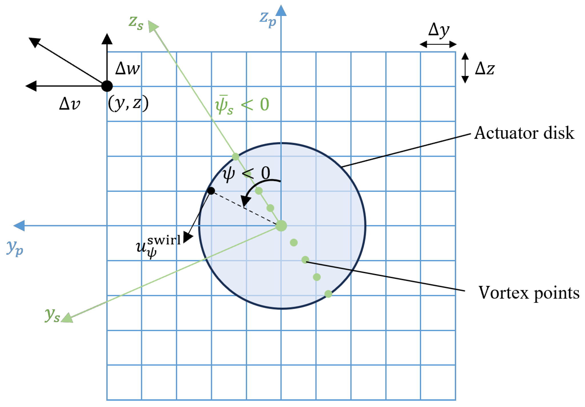 Figure 2 shows the schematic of the grid at the actuator disk plane. Although the modified RANS equations may lose some accuracy inherently [