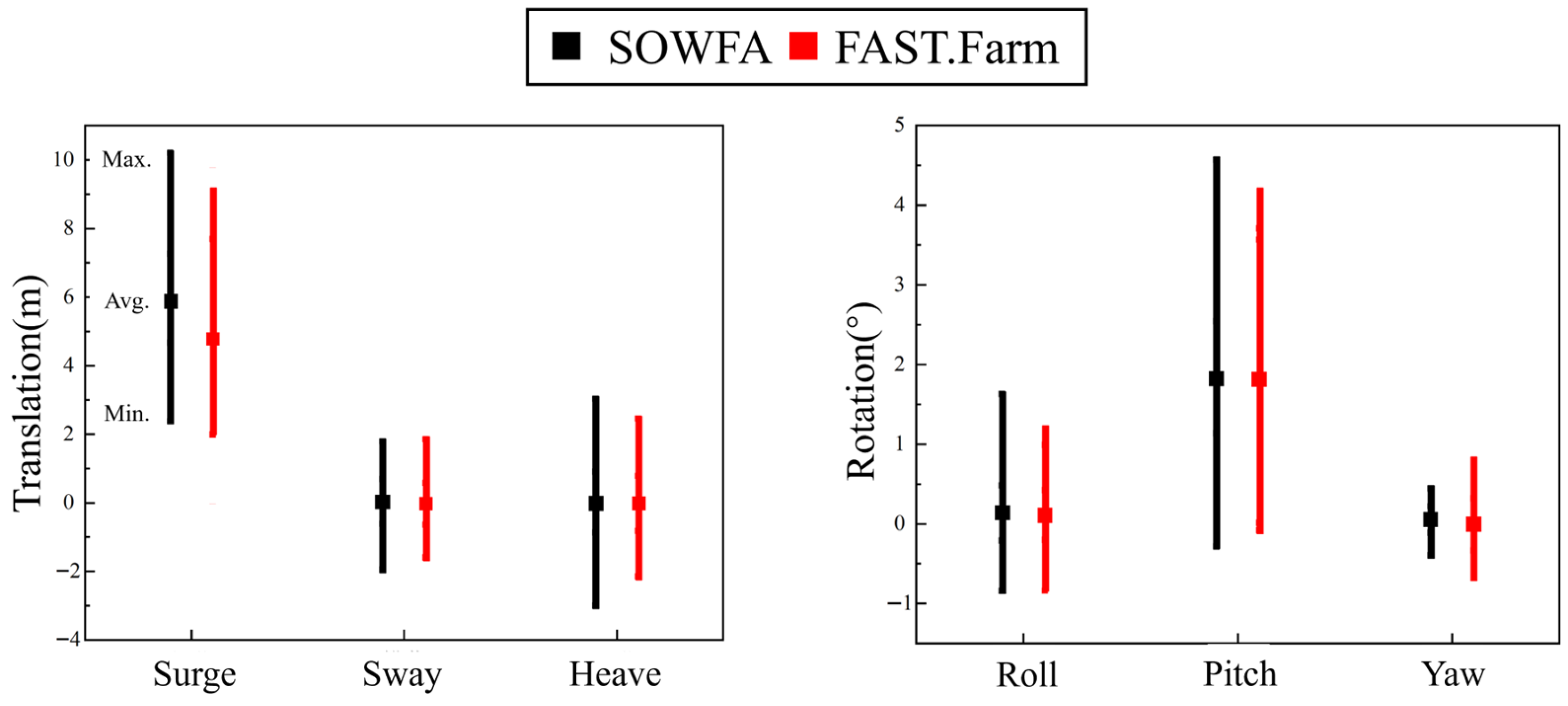 Figure 9 shows the average and maximum values of platform motion for the whole wind farm under different operating conditions.