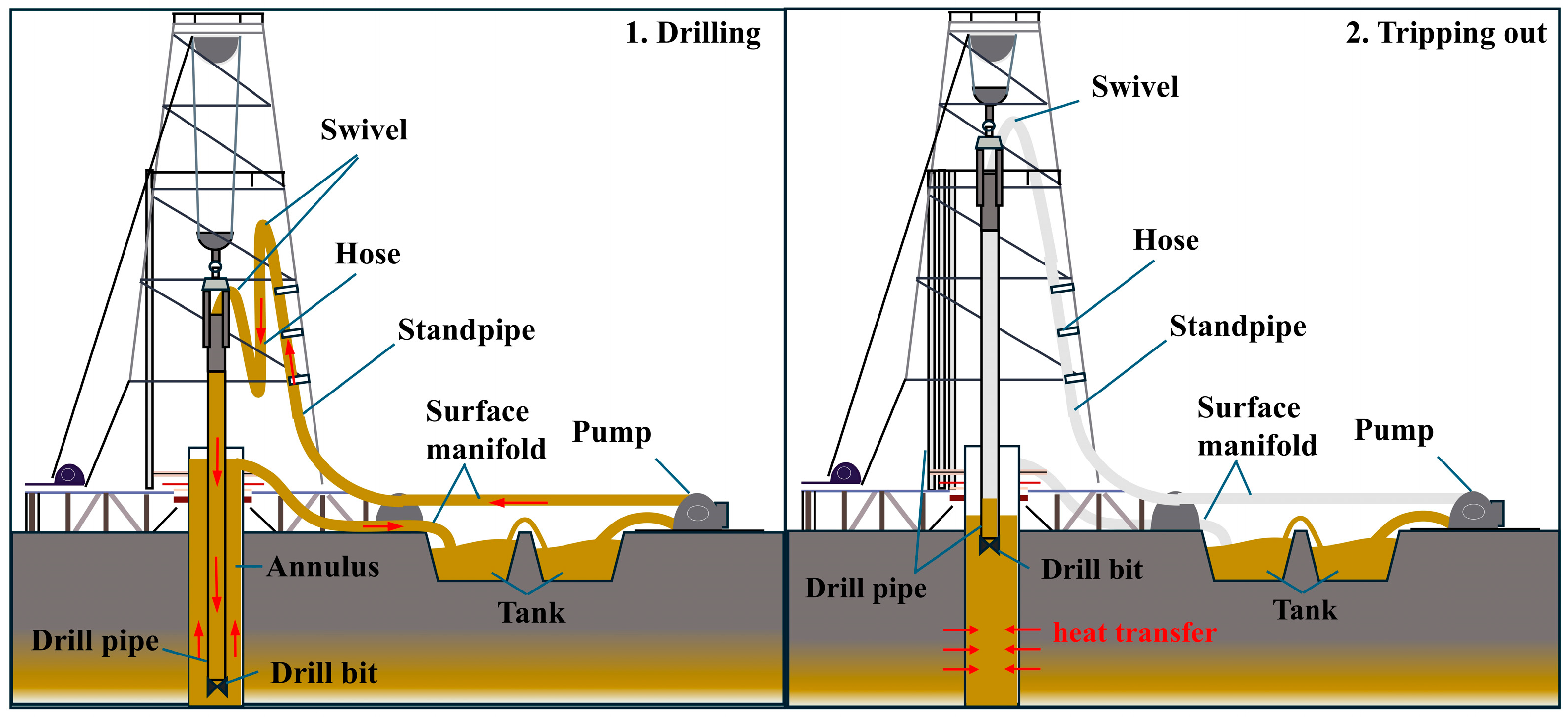| Drilling fluid circulation carries away heat | Drilling fluid is stationary, causing wellbore temperature rise |