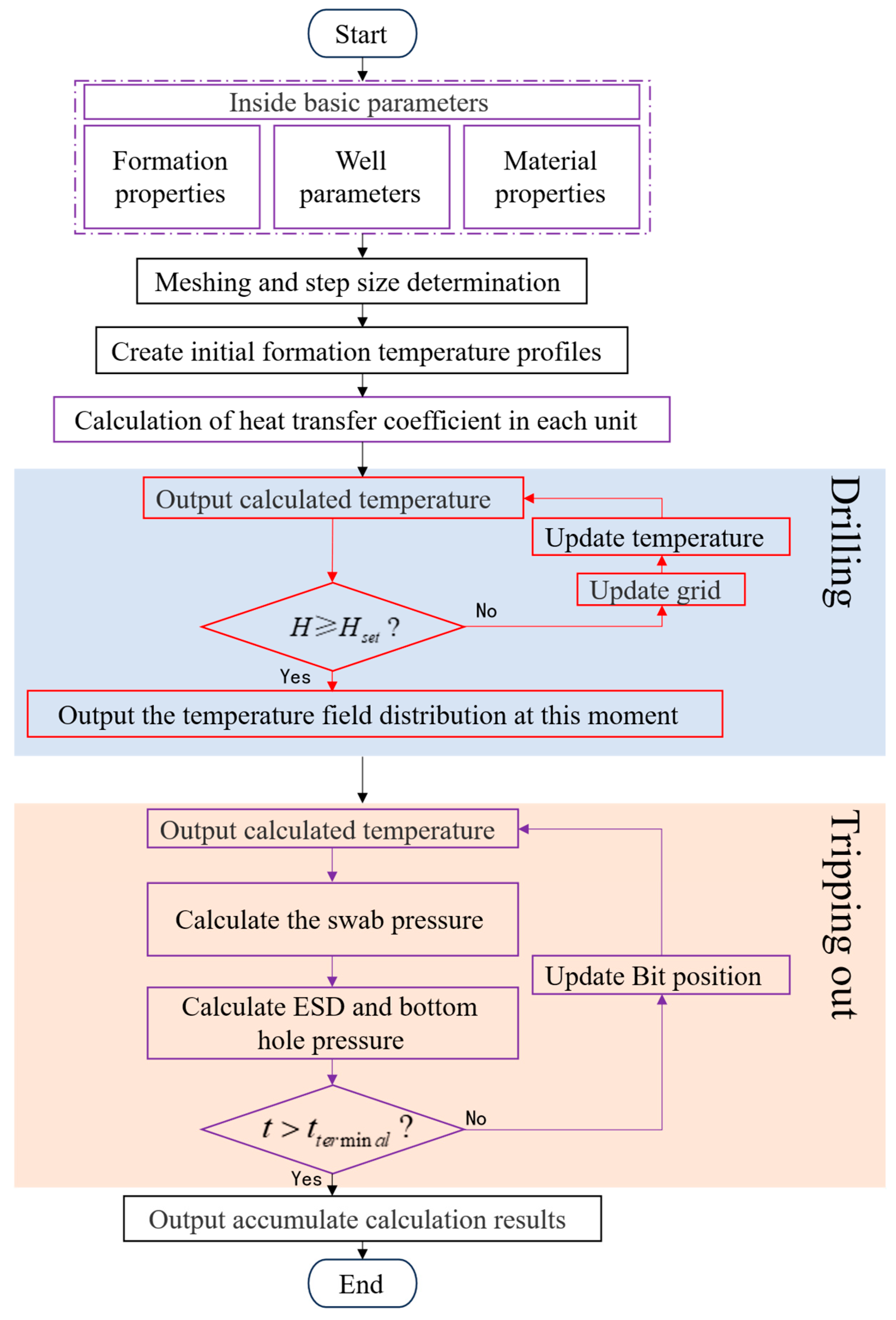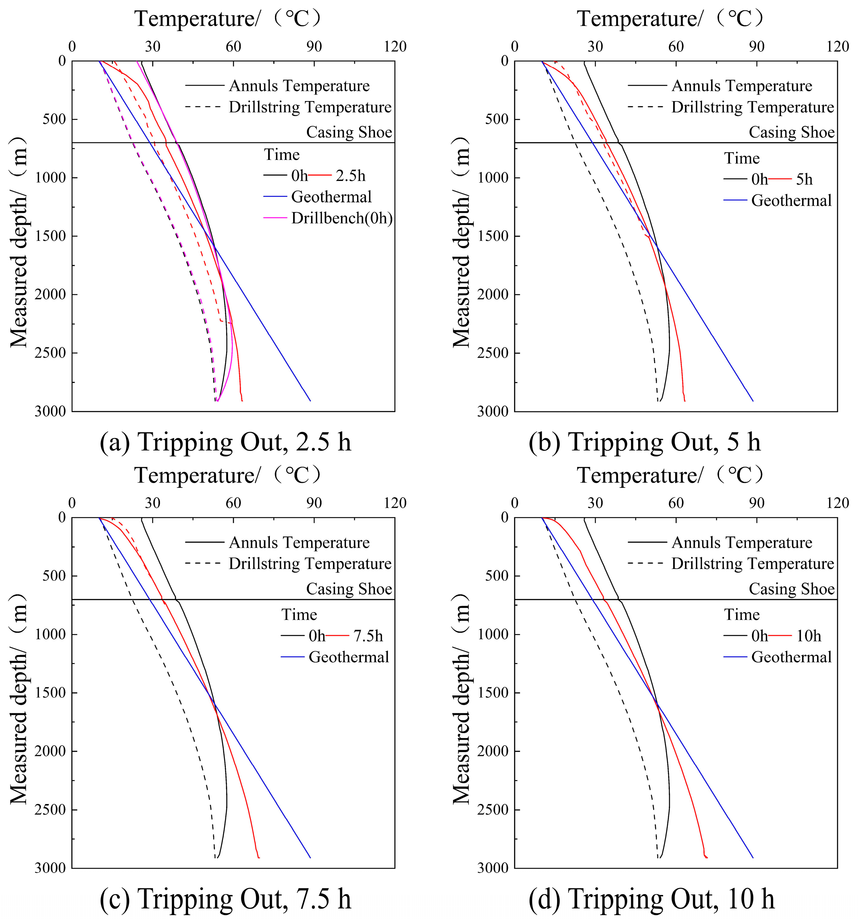 - Since the drilling state is maintained before tripping-out, the wellbore temperature distribution at the initial moment of tripping-out is the same as that at the end of drilling.