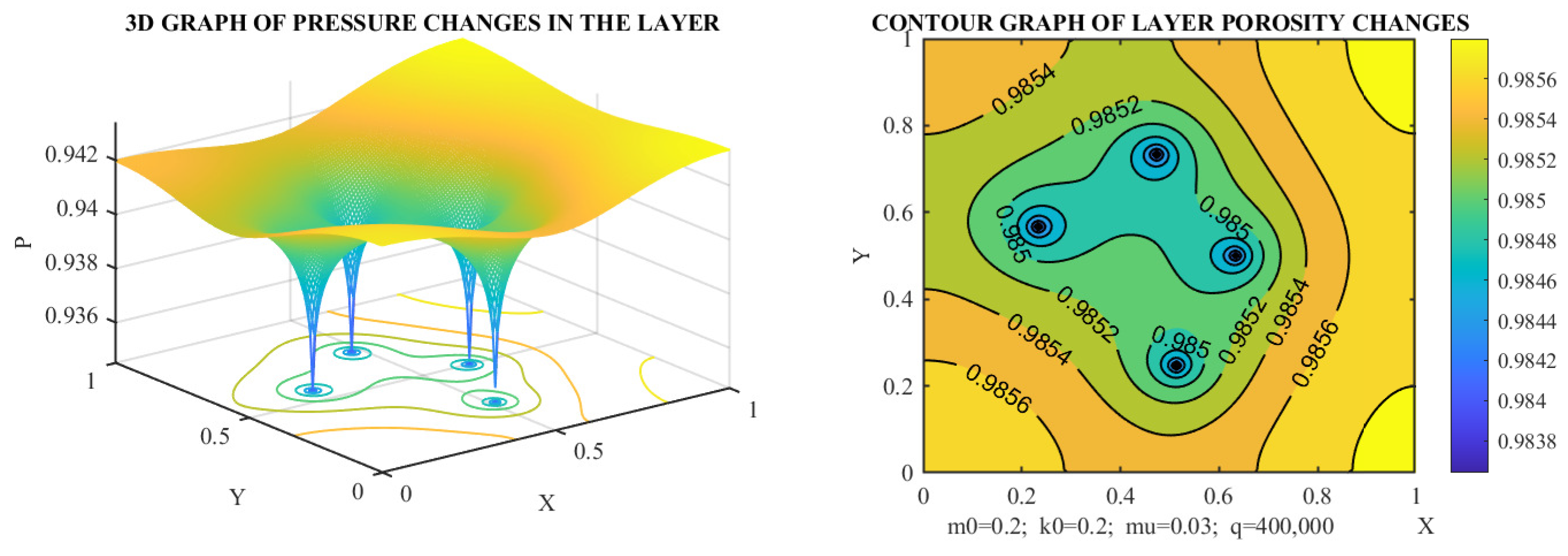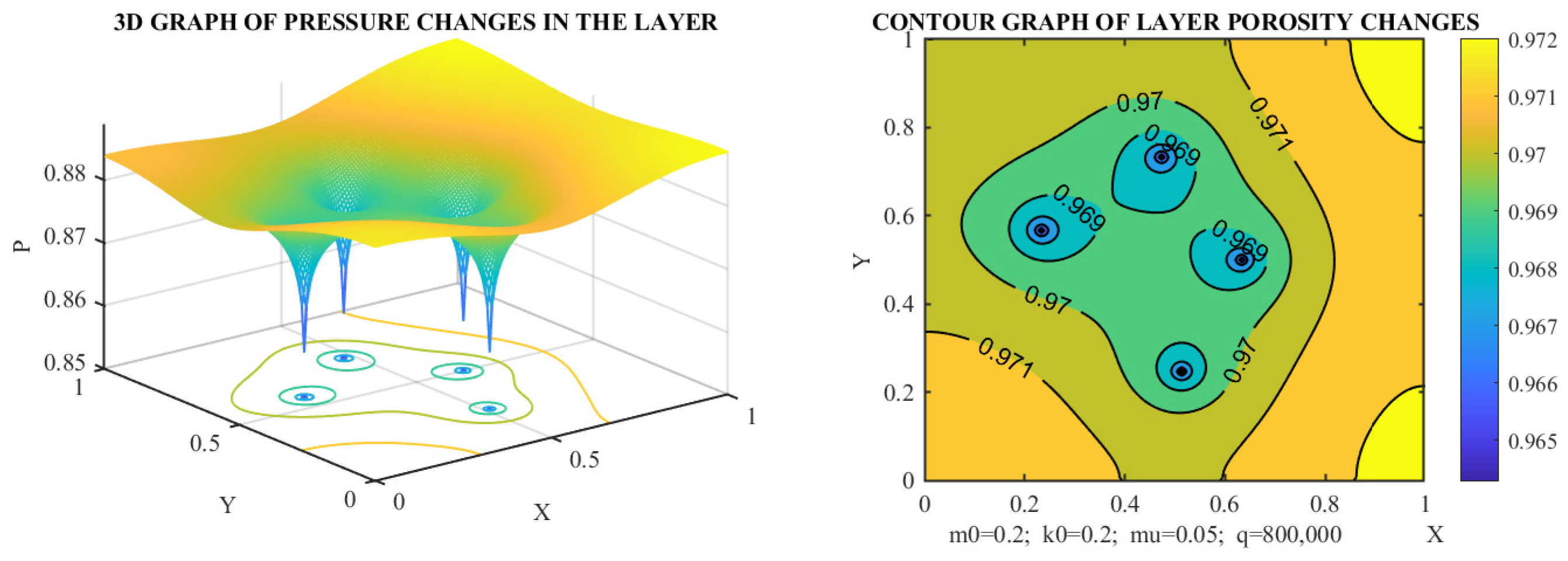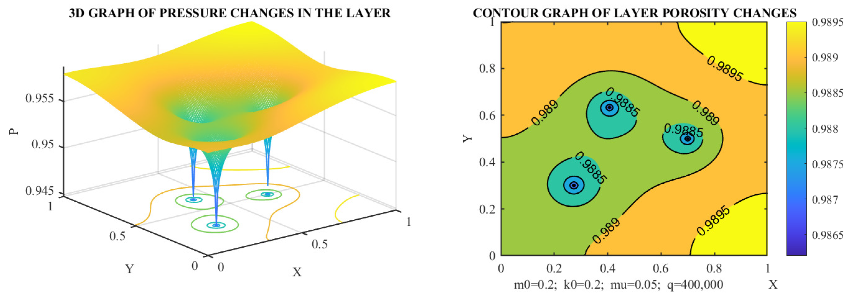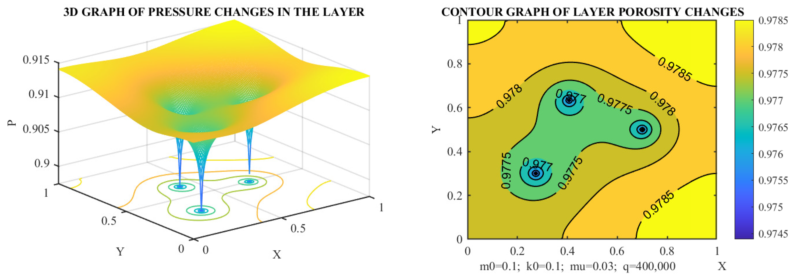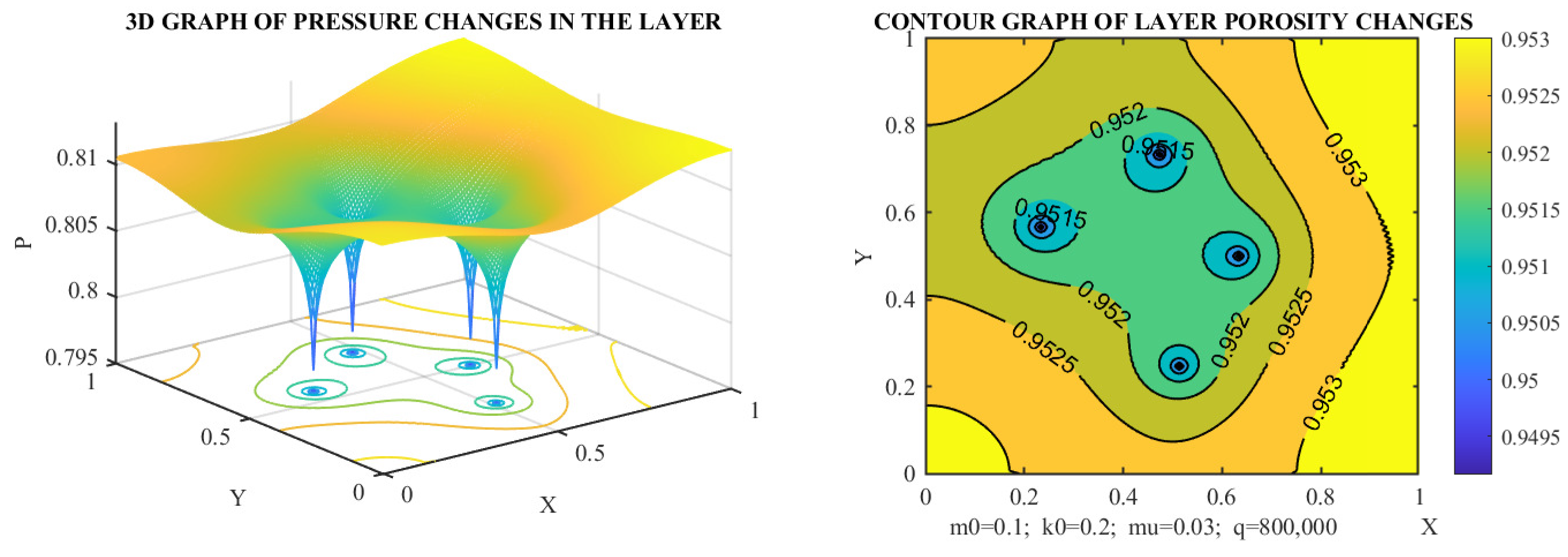 Figure 2 present comprehensive flow diagrams illustrating the complete computational procedure for both fractional steps, including initialization, iterative loops, convergence checks, and time advancement. The systematic implementation of this algorithm ensures robust and efficient solution of the nonlinear gas filtration problem, providing accurate predictions of pressure evolution and porosity changes throughout the reservoir domain over extended production periods.
