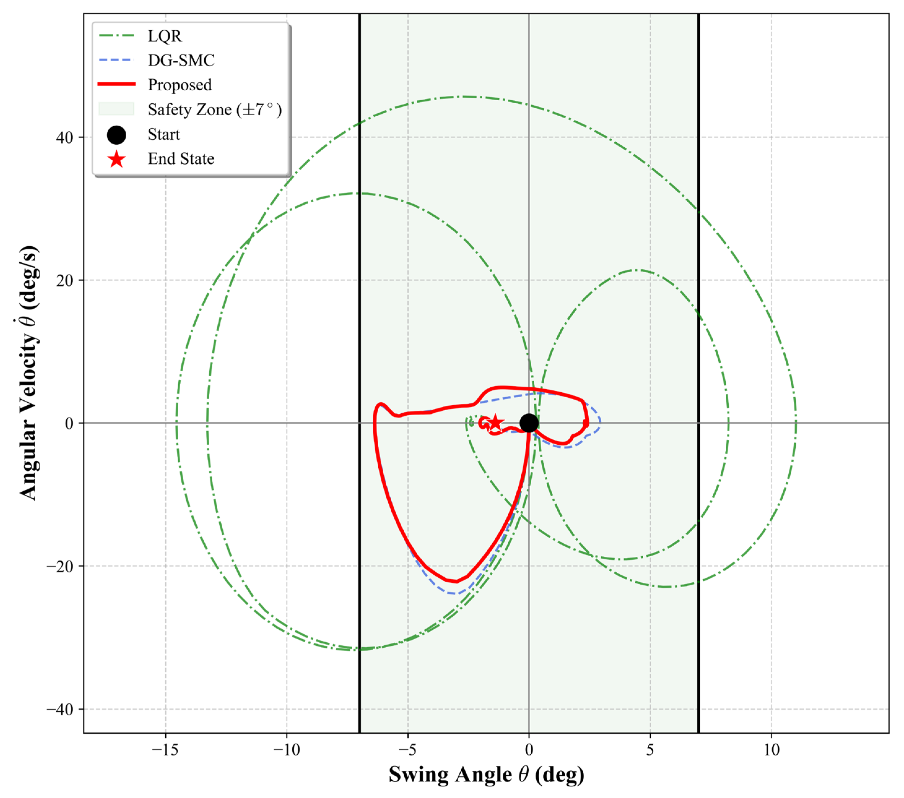 - Zhang, K.; Niu, W.; Zhang, K. Phase Plane Trajectory Planning for Double Pendulum Crane Anti-Sway Control. Algorithms 2025, 18, 246. [Google Scholar] [CrossRef]